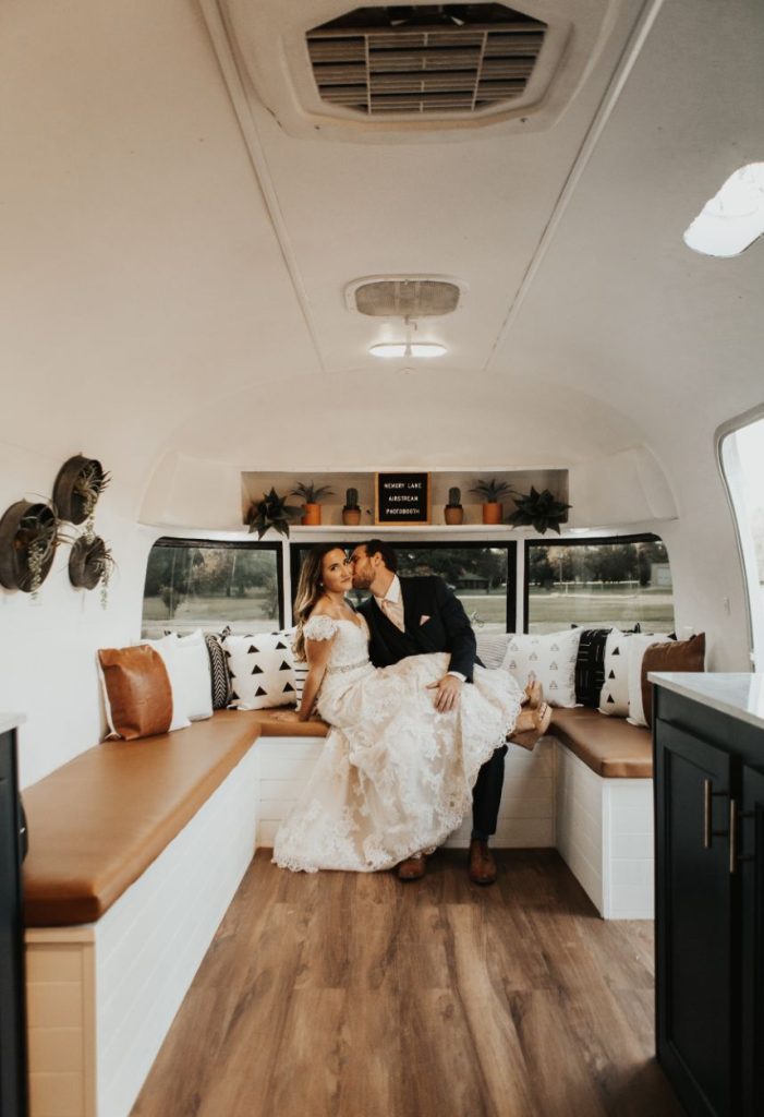 There is something about this Airstream photo booth that takes us walking down memory lane and we just can’t get enough! The ultra-trendy staff at Memory Lane Booth & Co. know just how to create the perfect balance of nostalgic and new at your special event. The interior of this gorgeous Airstream has been refurbished to a desert-chic theme, and we just love the way all its decor, potted plants and throw pillows make it feel just as warm and homey as it is picturesque. Your older guests will have so much fun posing for pictures and reminiscing about a simpler time while your younger guests will be amazed at their first time inside an Airstream! Check out this adorable gallery below that has us seriously wanting one at our own weddings! Cheers!