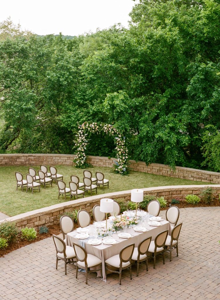 The girls got ready in my bedroom while the guys did their own thing – shooting clay pigeons and playing card games. Time seemed to fly between putting my dress on and walking down the aisle, but all of a sudden I was sitting with my dad, waiting to go outside and meet Chase under the floral arbor. The string quartet played ‘Beauty and the Beast’ as I walked. There was nothing distracting me from what we were doing and I remember every second of it – which I know isn’t the case for a lot of brides, so I cherish that. Afterward, we took a few pictures while the others started getting dinner ready – we had steak, potatoes, homemade rolls, brandied mushrooms… my mom is the best cook. We ate on the patio together at one big, beautifully set table and dined well past sunset. It was truly the perfect day that we never would have originally planned for ourselves!”
