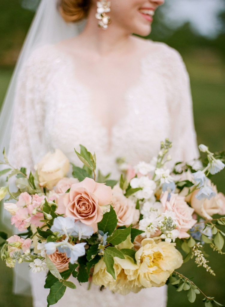 It only took us one look to fall in love with this whimsical, gardenesque corona wedding, not only because of all the lovely details, but because our go-to office manager and social coordinator, Maddy, is the gorgeous bride! Although COVID-19 forced Maddy and Chase to cut their guest list of 400 and to push their reception back several months to fit quarantine restrictions, nothing was going to stop them from having their floral-filled, pastel-colored, and overall simply beautiful intimate corona celebration. As Maddy said, “marrying Chase was really the only plan that mattered to me,” and it ended up being better than anything they could have intentionally planned.