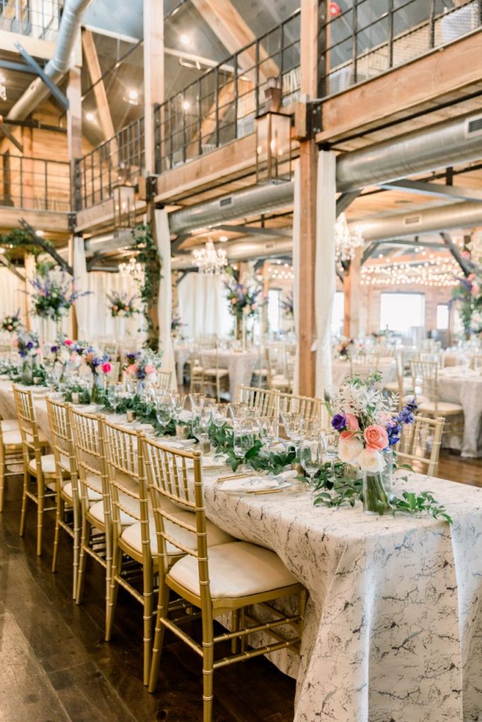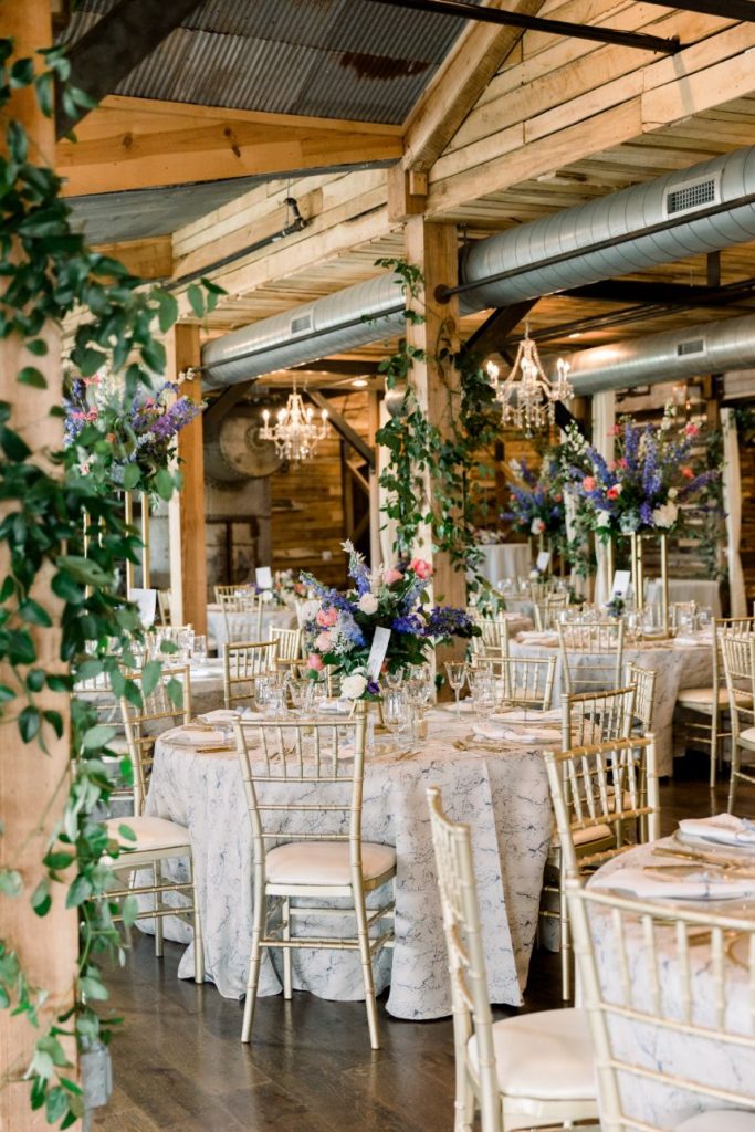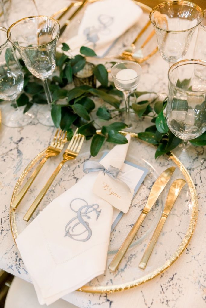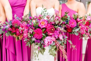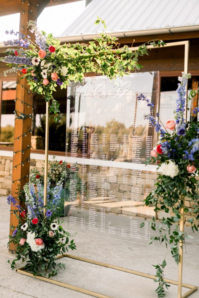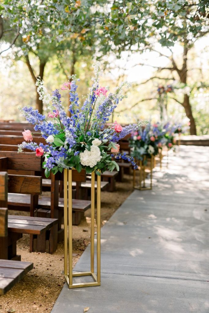 Grandmillennial style gets a touch of modern flair in this whimsical wedding absolutely full of garden romance! We’re pretty sure Elaine and Sean are the coolest couple we’ve ever seen, as they met while both working together in Washington D.C. for the Senate, had their first date consist of a tour of the West Wing, and they even have an article written about them in the New York Times. Southwind Hills was the perfect venue for their whimsical garden party – providing everything from the bridesmaids’ luncheon to the catering to the florals – as it’s rustic setting with beautiful autumnal-colored leaves and wooden accents complement this punchy color palette of blues, purples and bright fuchsia too well. A clean and elegant white invitation suite from Paper + More with gold lettering made for flawless detail shots, as well as the addition of the couple’s stunning rings from Naifeh Fine Jewelry that added a little bit of eye-catching sparkle. A reception space full of hanging greenery and faux-marble linens from Party Pro Rents is the embodiment of grandmillennial style, bringing the garden party feel indoors with bunches of bright blooms and tons of natural light, accented by clear and gold decor throughout. After a cocktail hour with the most breathtaking views of the Oklahoma sunset, guests enjoyed an incredible meal from Southwind Hills while Royal Duke’s Band played soothing jazz tunes through the whole dinner. Amy Cakes created a delectable masterpiece of an all-white five tier wedding cake, complete with small white fondant flowers for the perfectly delicate cake of our dreams. After their reception, the celebration continued as the couple and a few guests made their way downtown to the 21c Museum Hotel where they partied into the late hours of the evening and then retreated to their luxury rooms for a nights rest. With the bride graduating from OSU and the groom from OU, there seems to be one thing they can both agree on, beating Texas, which is why the day after their wedding the celebration continued with a bowling party and watch party where they watched OU beat Texas in the Red River Rivalry – truly the perfect ending to their wedding weekend! Looking through all of the incredible photos of this day from Mary Keen Photography is like the gift that keeps on giving – not to mention that this couple’s gift registry was from the always-amazing Bebe’s, who had all of the wedding presents this couple could have dreamt of. Scroll to see all of the details of this whimsical garden wedding that brings a modern flair to grandmillennial style and to read about the bride’s favorite vendor. Cheers to Mr. and Mrs. Casey!