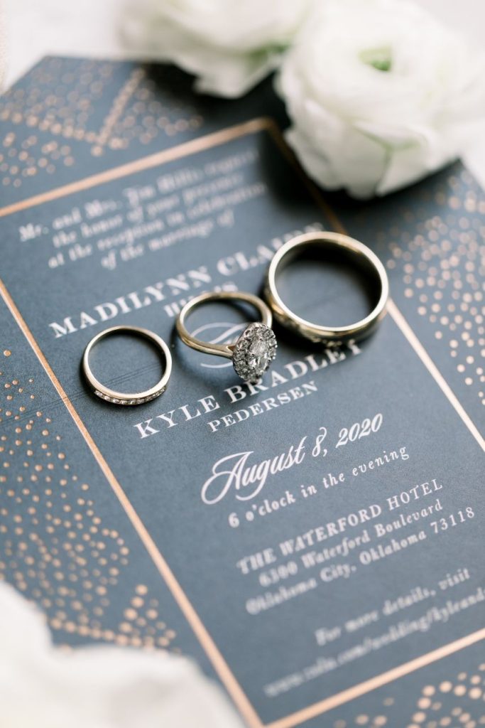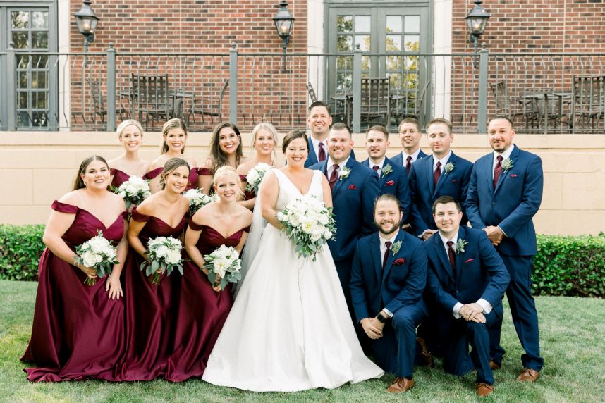 The Renaissance Waterford Oklahoma City served to be the perfect venue for Madilynn and Kyle’s traditional airy white wedding. The use of beautiful greenery throughout the venue highlighted the decor and rentals done by Mood Party Rentals. We can’t get over how the traditional deep tones used in the bridal party’s attire blended gorgeously with the classic gold details in the wedding decor. The bride wore an elegant dress paired with a unique veil from Bella Rose Bridal, which created the perfect mix of classy and fun. Of course no wedding look can be complete without the special new piece of jewelry. Kyle’s stunning wedding band is from BC Clark Jewelers. The couple will be able to reminisce on their happiest day thanks to the amazing work by Mary Keen Photography. This wedding proves that timeless style can work together with modern elements. Every detail worked together effortlessly to form an unforgettable traditional airy white wedding. Keep reading to see what bride Madilynn learned from planning her big day. Cheers to Mr. and Mrs. Pedersen!
