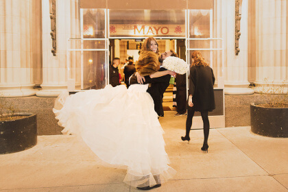 Grant proposed to Nicole the previous year on Christmas Day. When trying to finalize a wedding date, both knew they wanted a big celebration so New Year’s Eve came to mind. With the date locked in at The Mayo Hotel, Nicole, who is one of the lead wedding coordinators at The Mayo, spent the next year planning her dream wedding with her amazing Mayo Event + Design team.
