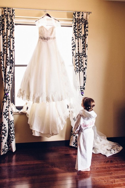 The couple’s “ring security” was their nephews who drove a mini electric Yukon Denali down the aisle to deliver the rings. Their niece looked the part of a mini-bride while scattering flower petals along the glittery path.