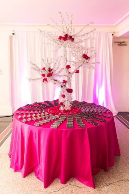 During the reception the bride and her bridesmaids performed a flash mob routine to music from the movie “Pitch Perfect.” Unbeknownst to the bride, the groom had also planned a routine of his own and performed his own version of the parade scene from the movie, “Ferris Bueller’s Day Off,” complete with a high school band and professional dancers.