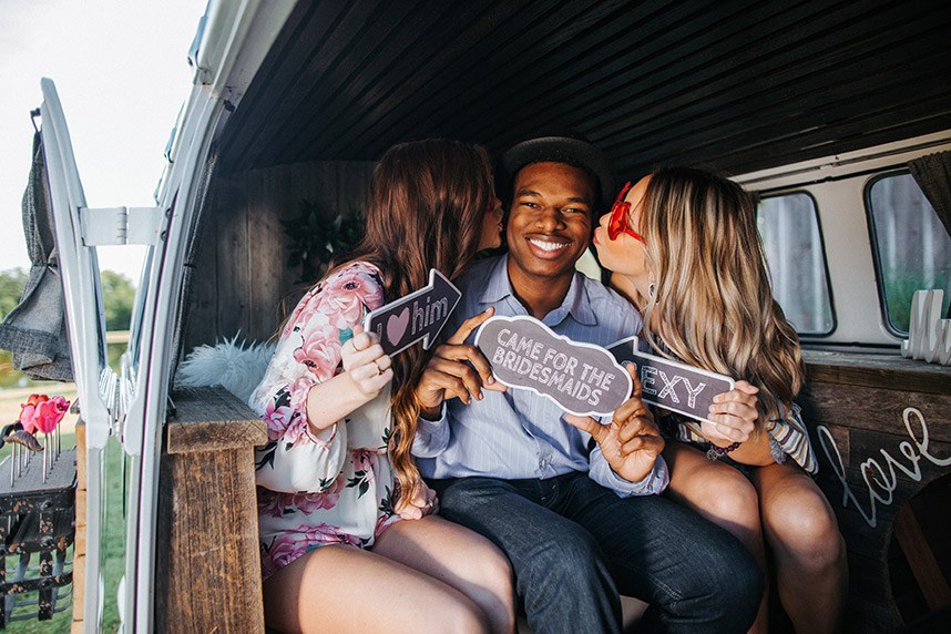 Say hello to Suzie Q – a 1967 Brazilian VW Bus turned one-of-a-kind photo booth by the Wolfburg PhotoBus! Guests will love when Suzie Q rolls into your wedding reception for a fun-filled celebration. Pack in nine guests or fit five comfortably and have a blast playing with the customizable color schemes and props. For an even larger crowd, opt for Wolfburg’s large format camera that sits outside capturing you and your guests in front of sweet Suzie Q. Contact the Wolfsburg PhotoBus about booking Suzie Q and additional services like specialized prints and logo branding for your big day!