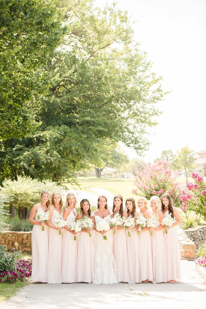 Molly and Andrew chose to get married in her hometown of Enid. Prior to the ceremony, Molly experienced a few of her favorite moments that included her first look with her bridesmaids and afterward, her groom. Following their first look, Molly and Andrew hopped in a golf cart for photos around Oakwood Country Club of Enid. After saying their “I dos” at First Presbyterian Church, they drove to the country club in a 1936 Cadillac. Their plan was to take sunset photos on the golf course, but they were met with a light, misty rain. Despite this, the newlyweds cherish the moments under the cloudy Oklahoma sky.