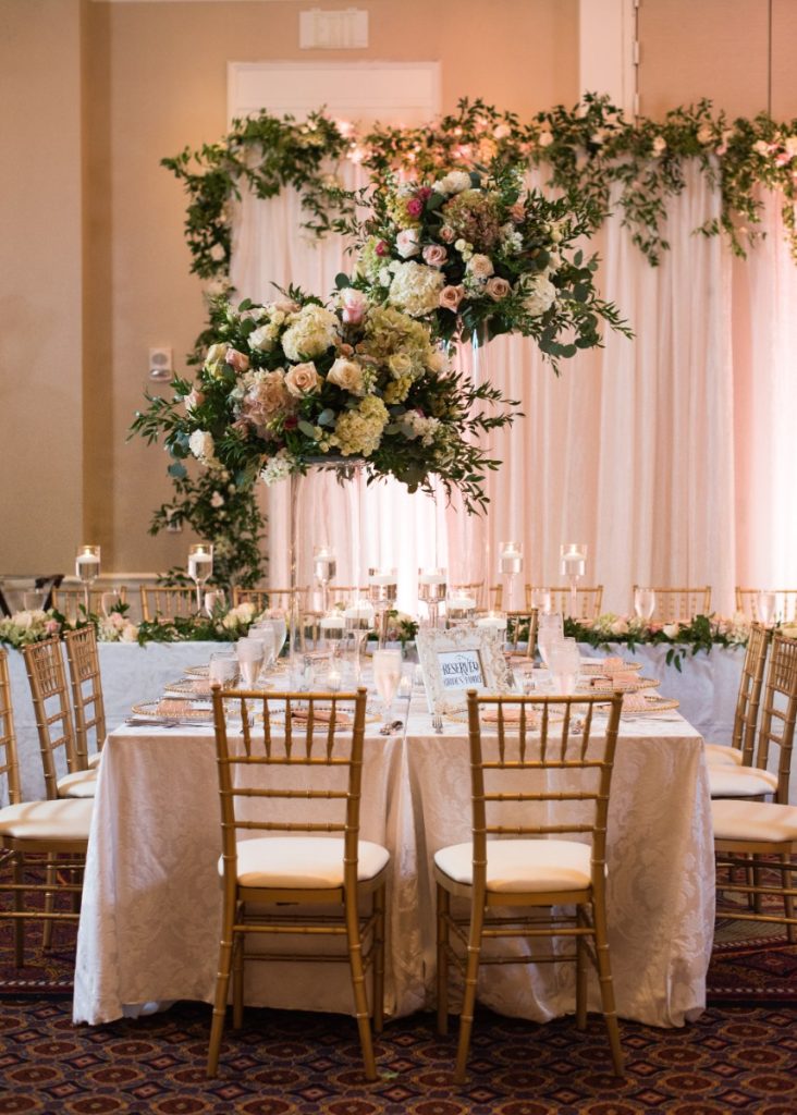 Kelly and Isaac’s elegant floral filled ballroom wedding at The Skirvin Hilton is so classic! Tony Foss blew us away with those stunning arrangements throughout the room – what a dream come true for any floral loving bride!