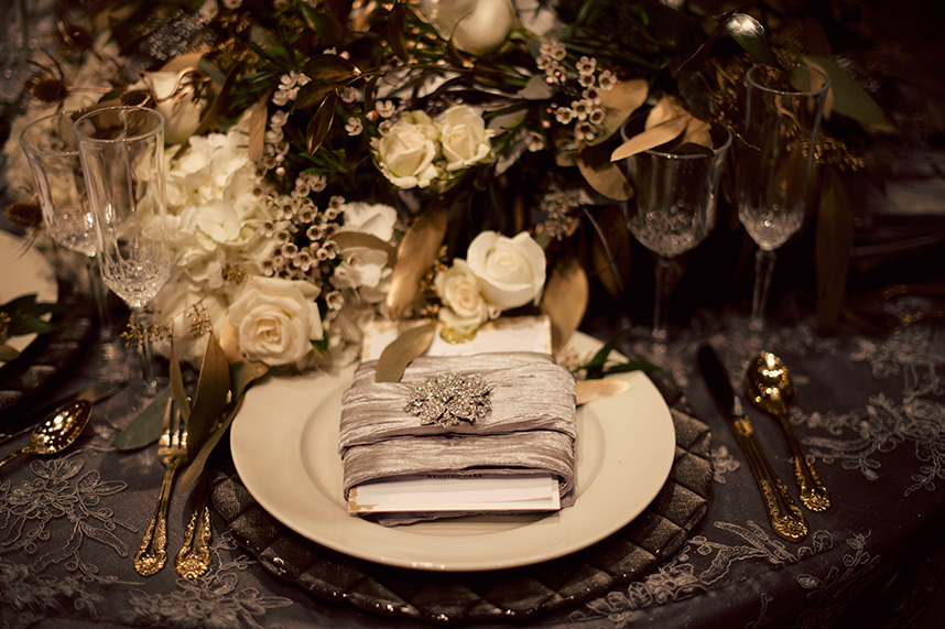 Styled Shoot Vendors: Marianne’s Rentals for Special Events, Innovative Event Solutions (lighting), Emerson Events (florals), Traina Photography, J.J. Kelly Bridal Salon (belt, earrings,) Ideas In Ice, The Paper Lion, Von Wedding Films, Malorie Avaline (hair/makeup), Tres Jolie Edmond (bracelet & earrings) and Oklahoma City Golf and Country Club.