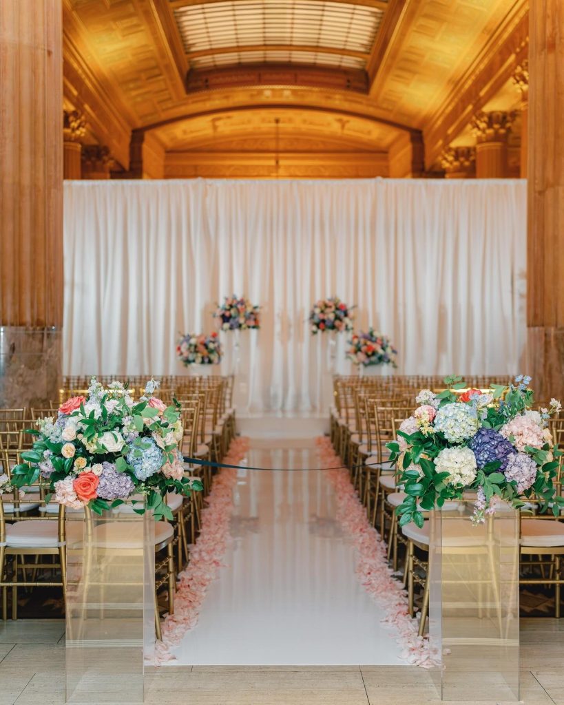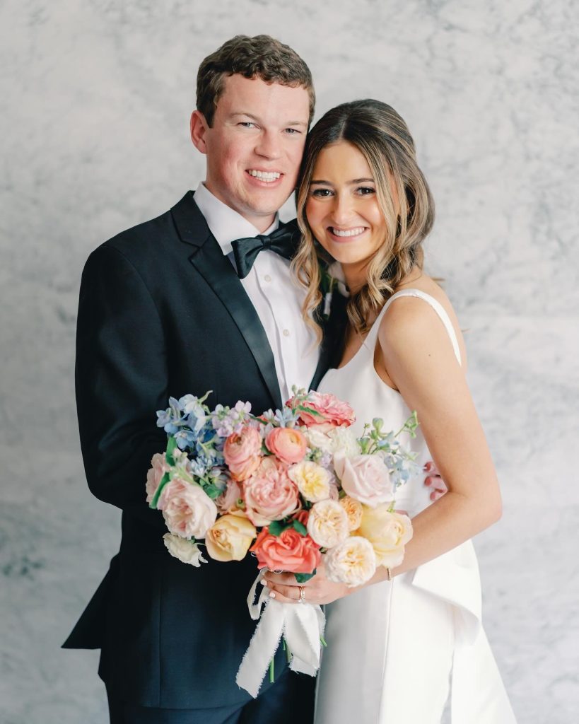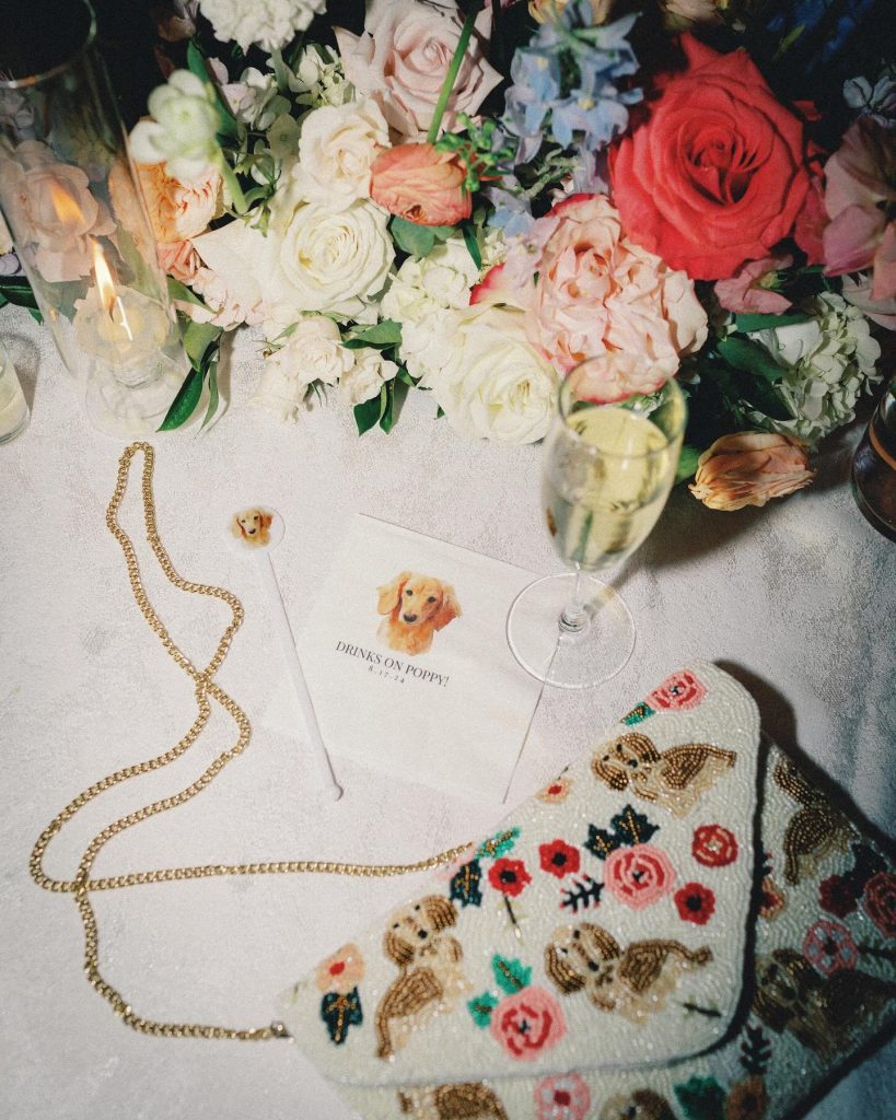 Eliot and William’s wedding at The National OKC was a celebration of romance and elegance. A lush color palette and stunning florals by Poppy Lane Design created a dreamy atmosphere, while guests were greeted with champagne before the ceremony. Personal touches, like their beloved pup appearing in the details, added extra charm.