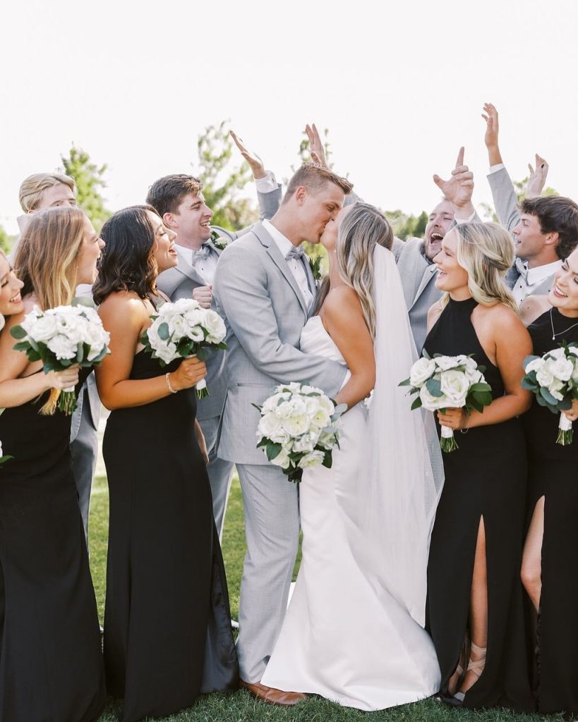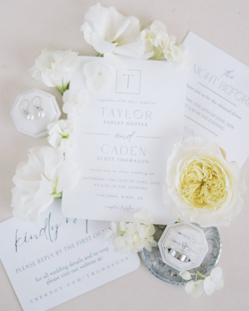 A Wedding Color Palette That Stands the Test of Time: Classic Black & White! Taylor & Caden’s unforgettable celebration blended timeless elegance with modern flair, featuring a breathtaking outdoor ceremony at The Vinterra Tulsa and so many exquisite details.