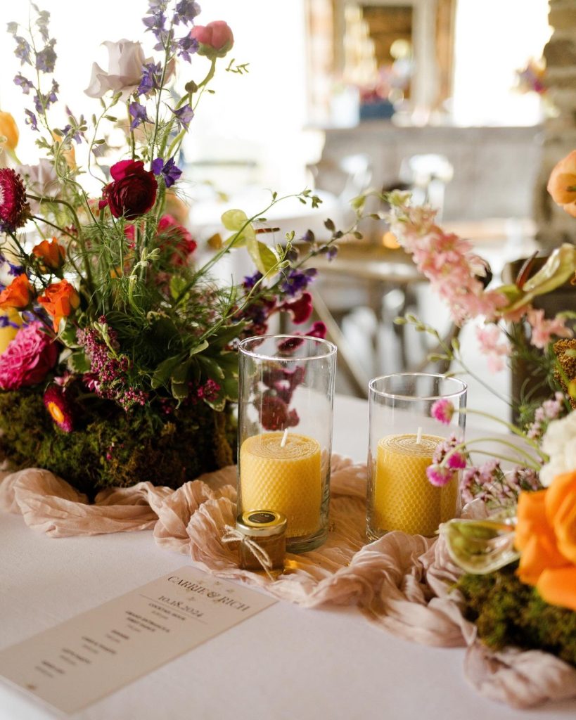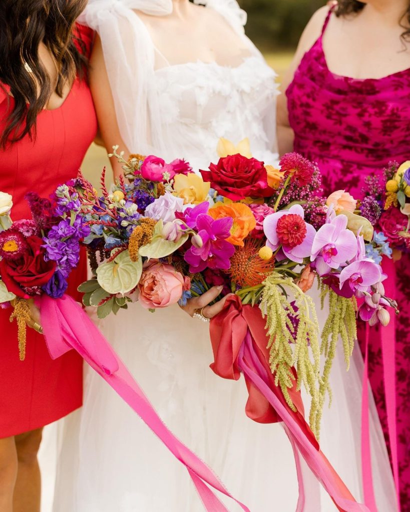 Carrie & Rich’s fall wedding at Esperanza Ranch was a burst of color and joy! Stunning blooms by Ribbon & Blooms Floristry brought their bright color palette to life, with every detail flawlessly coordinated by Faithful Events Co.