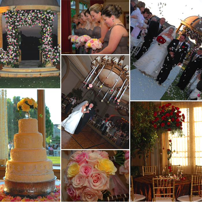 The wedding and reception was held at Gaillardia Country Club in Oklahoma City, a grand and appropriate setting. The ceremony was held outside on the impeccable grounds underneath a gazebo covered with an arch of over 40 dozen pink roses and urns filled with the same – all a carefully-constructed and artistic creation of Flowers by Pat in Oklahoma City. Lighting transformed the indoor reception into an elegant, fairytale setting and outside was a tropical celebration. All of the linens were provided by Bill Veazey’s Party Store. Box Talent met all of the brides entertainment needs with two separate bands – Radio Soul with a more classic vibe and a steel drum band, Something Steel, who contributed to the island flair of the festivities outside.