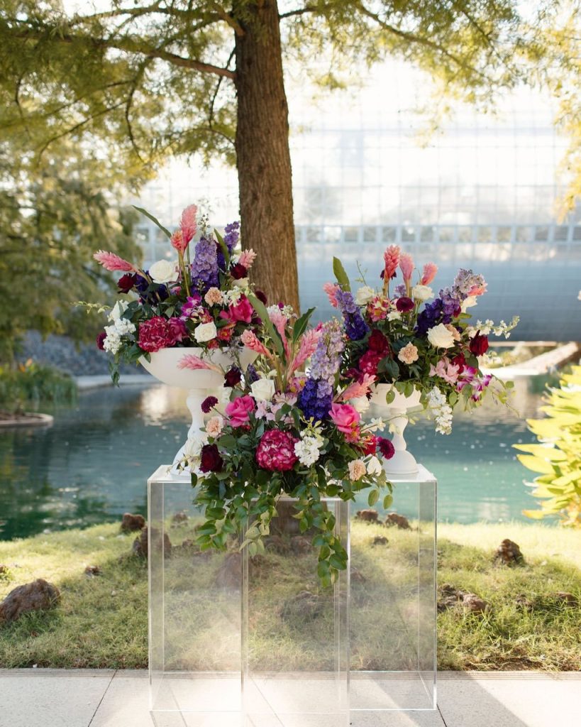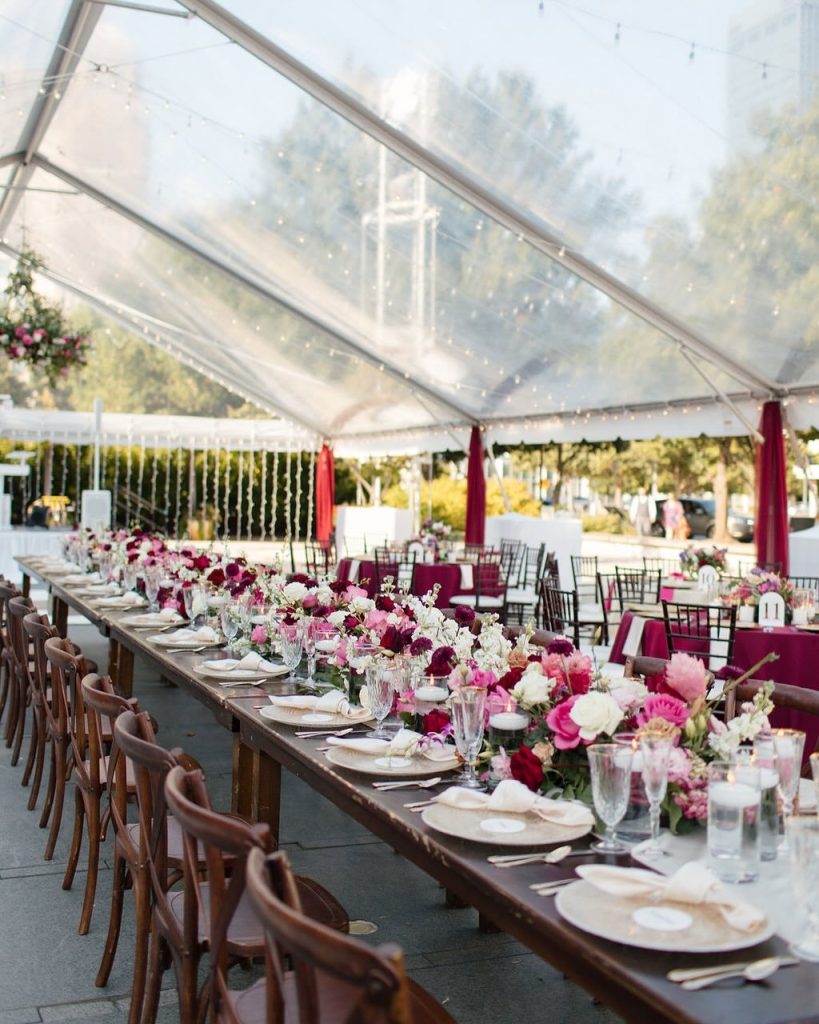 Brooke & Daniel had a gorgeous outdoor wedding celebration at the Myriad Botanical Gardens, beautifully planned by Embellished Weddings! Their magical day was elevated with vibrant florals by Tony Foss Flowers in rich hues of burgundy, pink, and gold, creating a breathtakingly romantic setting. Cheers to the newlyweds!