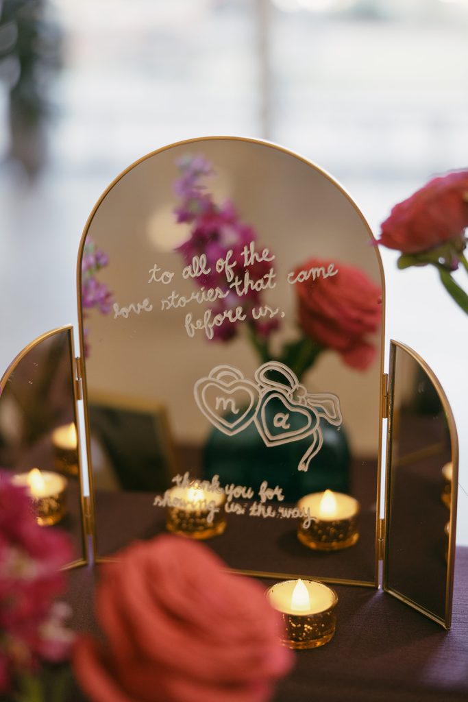 Michyla & Aaron’s wedding was an absolute dream! The bride looked stunning in a gown from Bella Rose Bridal, and the groom’s suit from The Wardrobe Modern Menswear  perfectly complemented the color palette. The rich jewel toned touches from Marianne’s Rentals made for a gorgeous fall celebration, and Mary Bender Photography captured every moment of this day beautifully. We can’t get enough of this sweet celebration!