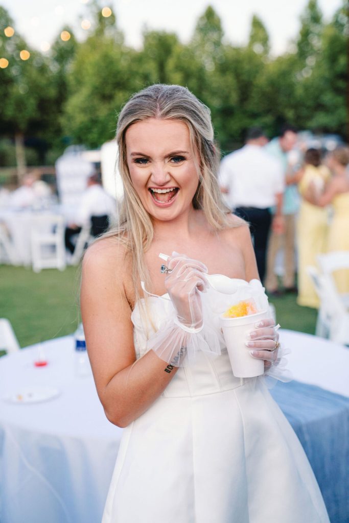 The ceremony was particularly special, as their officiant was the same person who married Meagan’s parents 27 years ago. Meagan & Matthew exchanged personal vows at the altar, creating cherished memories. The reception was a highlight, transforming into an instant party as the dance floor opened. Reflecting on their special day, Meagan shared, “Our wedding day was straight out of a movie, and I wouldn’t change a thing!” With laughter, love, and unforgettable moments, Meagan & Matthew’s wedding beautifully celebrated their love story.