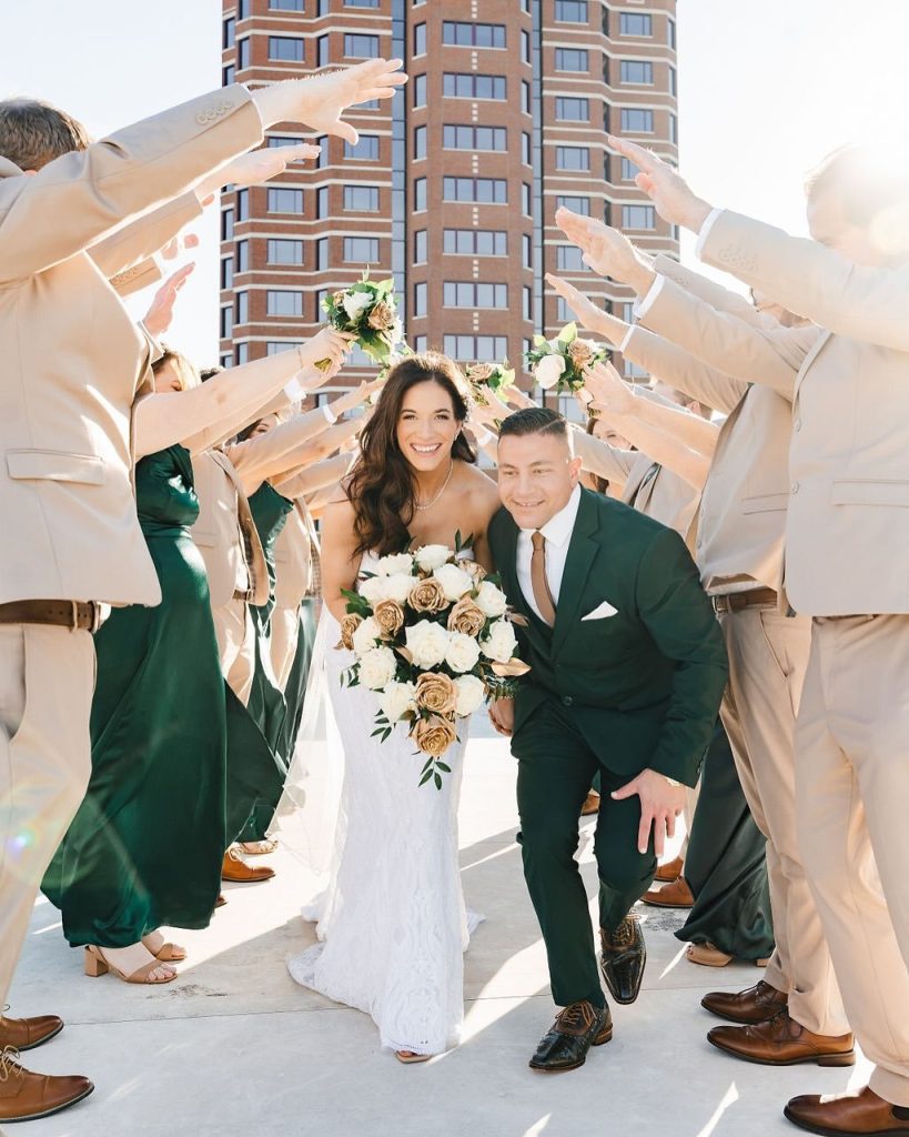The couple shared, “Our wedding day was a magical celebration of love, faith, and family. The elegant gold and emerald green color scheme, combined with the stunning chandeliers, created a truly enchanting atmosphere. The formal attire added a touch of sophistication, and the inclusion of the three cords knot ceremony reflected your commitment to God as the center of your relationship.”