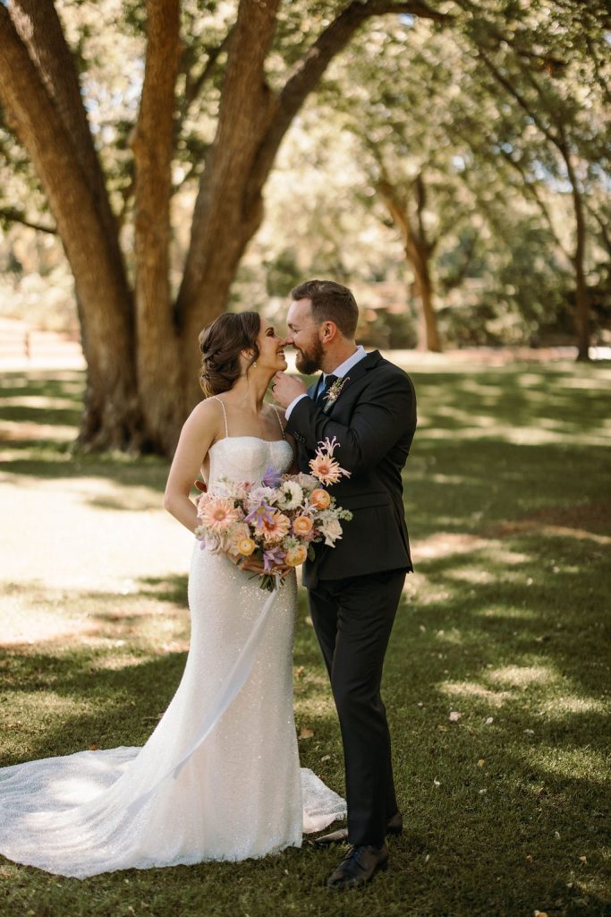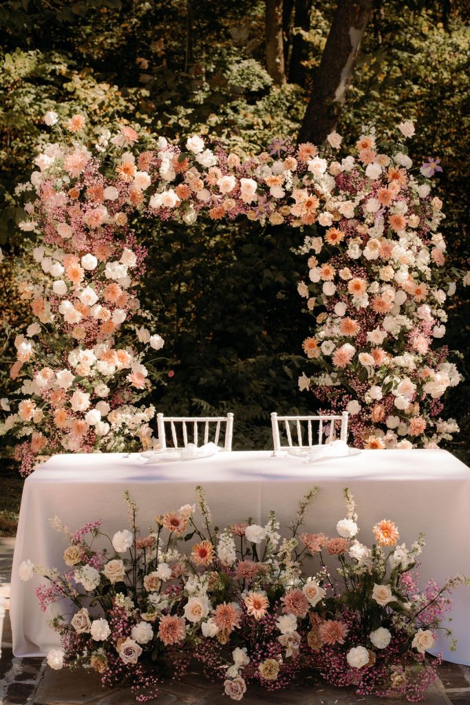 Paige and Tate’s dreamy brunch wedding was so delightfully idyllic. They said their “I do’s” in front of a blooming floral arch that was illuminated by the windows behind and it was picture perfect!