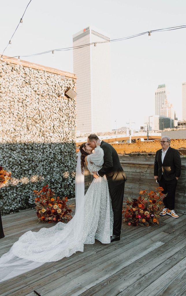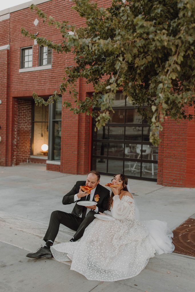 This radiant rooftop wedding coordinated by Infinity Rose Events Co was so dreamy! The rich color palette of the florals and decor was absolutely enchanting. Even with all the beauty that encompassed this wedding, one of our favorite photos still has to be the one of the bride and groom having a slice of pizza curbside.