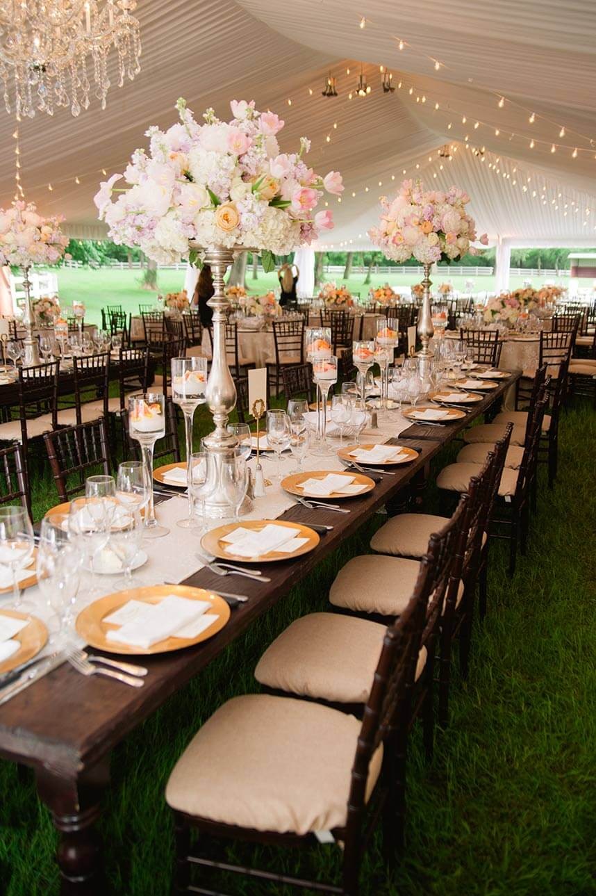 Abbey and Hunter’s beautiful backyard reception brings my “Father of the Bride” dreams to life! I love that they transformed an outdoor tent into an elegant and intimate reception space.