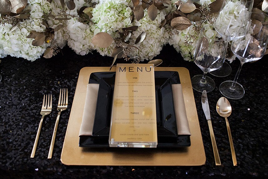 This acrylic menu at each place setting screams sleek and modern! It’s the perfect first impression when guests take their seats.