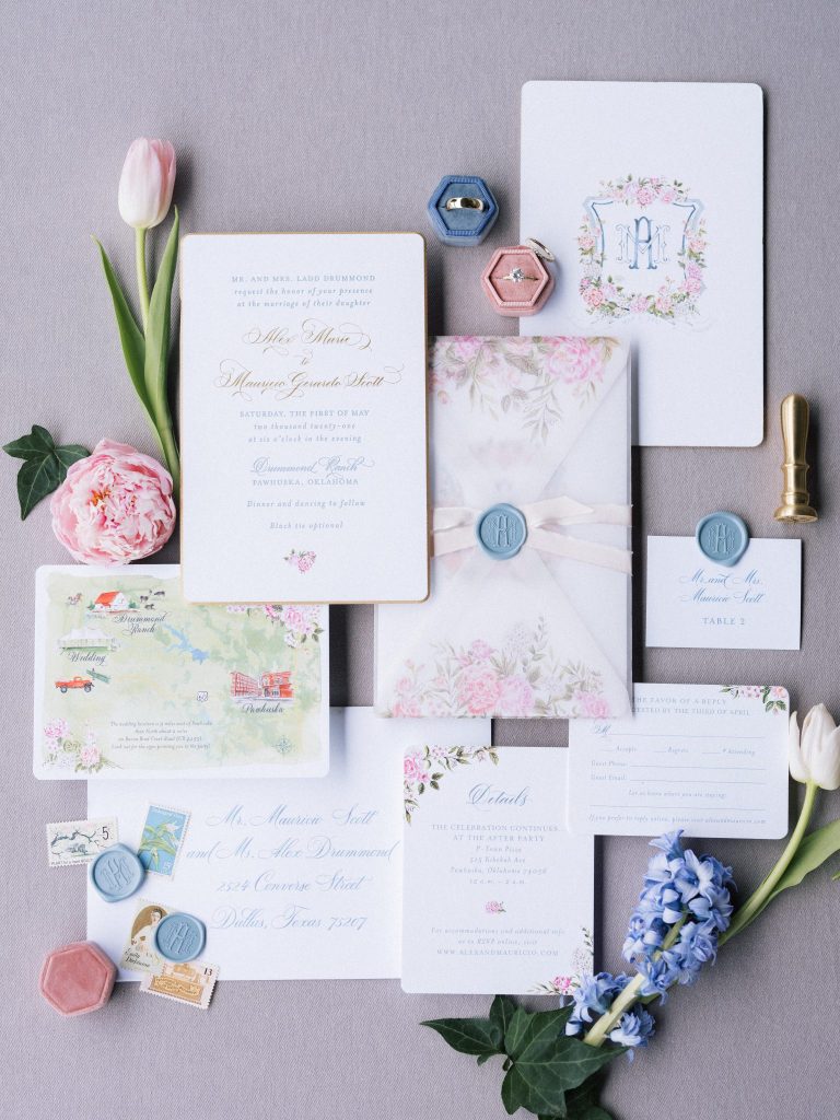 Whimsical, romantic, elegant and full of family flair – all elements to combine into the perfect recipe for Alex Drummond-Scott’s, the Pioneer Woman’s daughter, dream of a wedding day! Composed of darling pastel hues and bountiful blooms in coordinating shades, this outdoor scene nestled on a part of Drummond Ranch brought the party to the prairie for a spring evening tented soiree of a lifetime. Our eyes and hearts were completely captivated, not only by every incredible detail of this day, but the college sweethearts themselves, Alex and Mauricio! After meeting at a her sorority’s date party freshman year of college, the two became good friends for a year before they started dating. Now, in their whimsical stylized affair, the two celebrated their love in the grandest way, and I don’t think we’ll ever have enough of it!