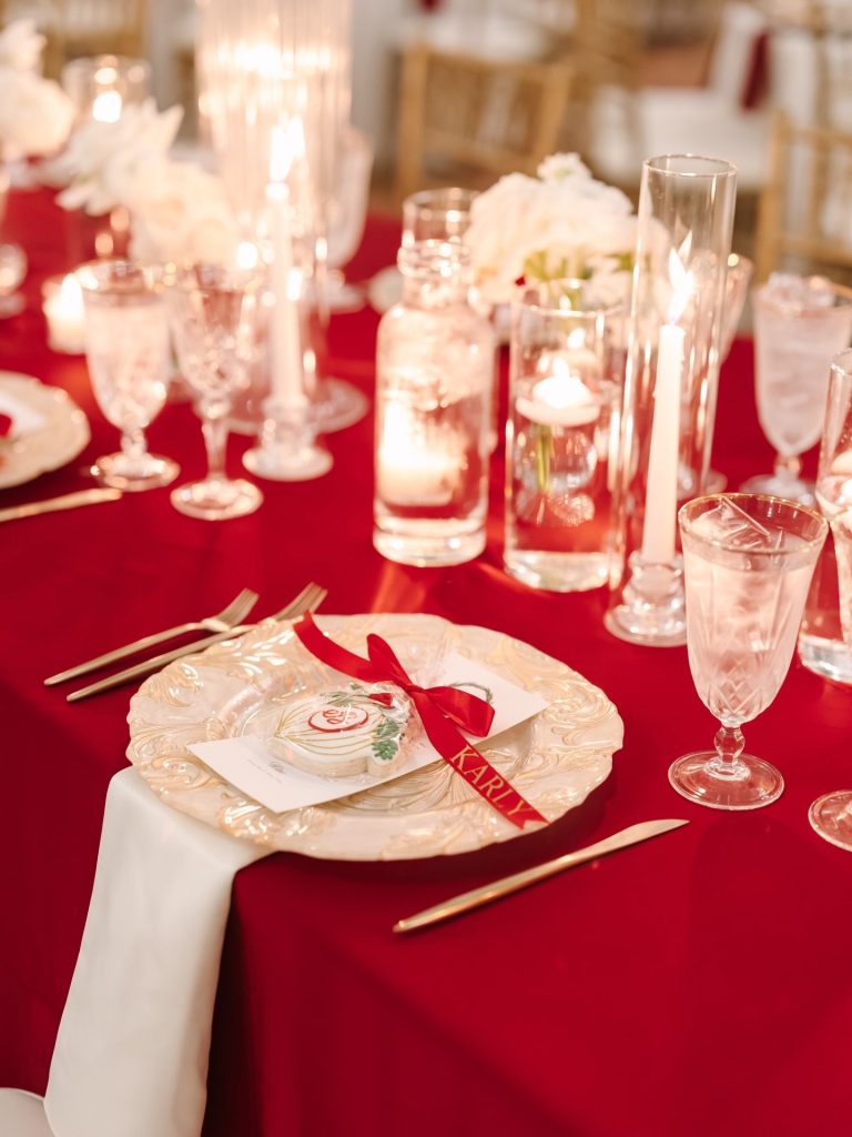 Talk about Winter wedding goals! High School sweethearts Sam & Travis had an elegant December wedding in OKC. They went all-in on the seasonal theme, and the gorgeous mix of white flowers, fun splashes of red, and soft candlelight made their big day absolutely shine.