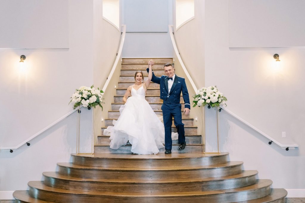 “They had a clear vision of an upscale, timeless, elegant but FUN wedding day and that’s exactly what we did. The ceremony was stunning and elegant with St. Francis as the venue. The guests were shuttled to the reception site where they were greeted with hand-passed chicken and waffle cones setting the scene for the Grand Entrance to Top Gun!” – The Moment By Casey