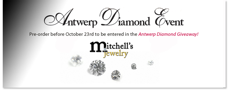 The wonderful staff of Mitchell’s Jewelry travels to Antwerp, Belgium to hand select the most beautiful diamonds the world has to offer! Pre-order your Antwerp diamond before October 23rd and be entered in the next Antwerp Diamond Giveaway! Cheers!