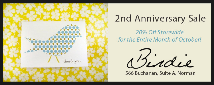 Another special anniversary! Birdie would like to say a huge thank you to all their amazing customers. As a token of gratitude bring this email into the shop and receive 20% off storewide for the ENTIRE month of October!