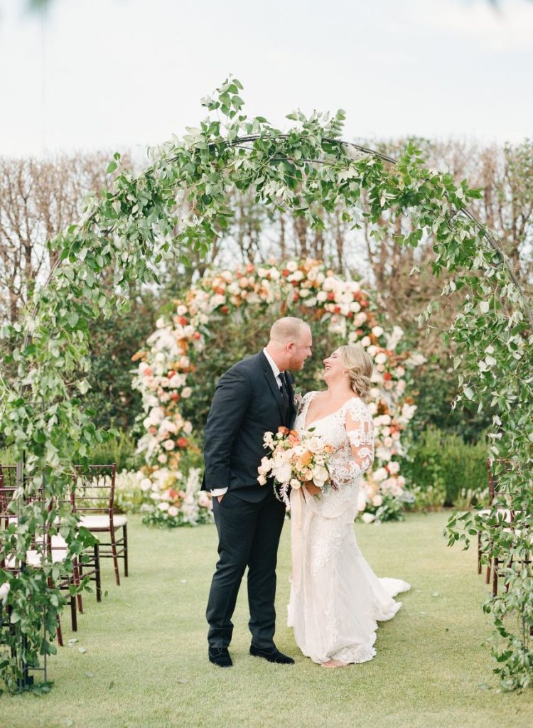 Arianna and Stephen’s bohemian chic wedding at Coles Garden Wedding and Event Center is making all of our terracotta dreams come true! The couple met online, and their connection was undeniable after the first date. Stephen got down on one knee with an electrifying proposal. Arianna said, “In August 2019, we got engaged on our favorite beach surrounded by a tropical storm, but right above us were clear skies. As he placed the ring on my finger, lightning struck (literally)!” After getting engaged, the pandemic hit, forcing Arianna and Stephen to postpone their original wedding date back a year. However, the long-awaited nuptials were worth the wait as the couple said their “I do’s” with their family and friends in attendance.