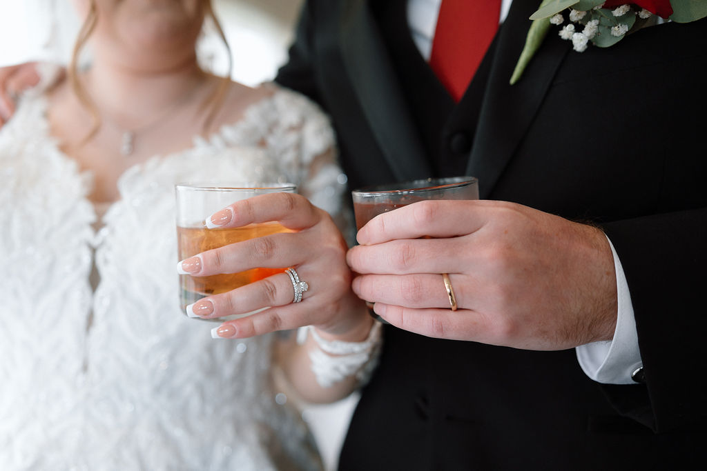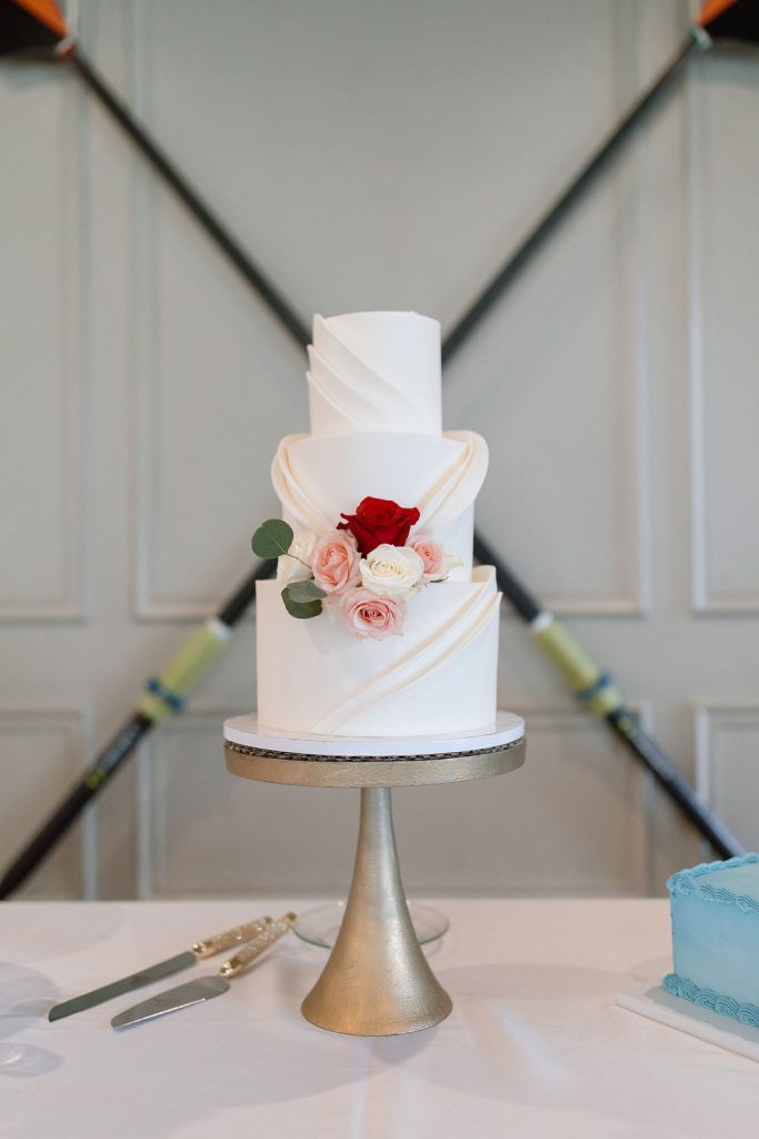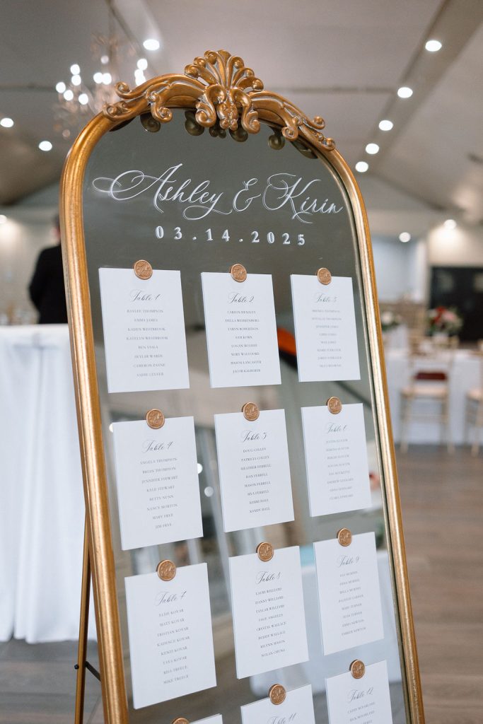 Ashley & Kirin’s romantic spring wedding was beautifully highlighted by shades of red. One of the bride’s favorite personal touches was incorporating their beloved pets, naming their signature drinks after them for a fun and meaningful detail. They also honored Kirin’s passion for rowing, with a groom’s cake featuring the couple rowing together, oar blades on the wall, and his coach serving as the officiant. From the thoughtful touches to the breathtaking celebration, their day was a perfect reflection of their love and personalities!