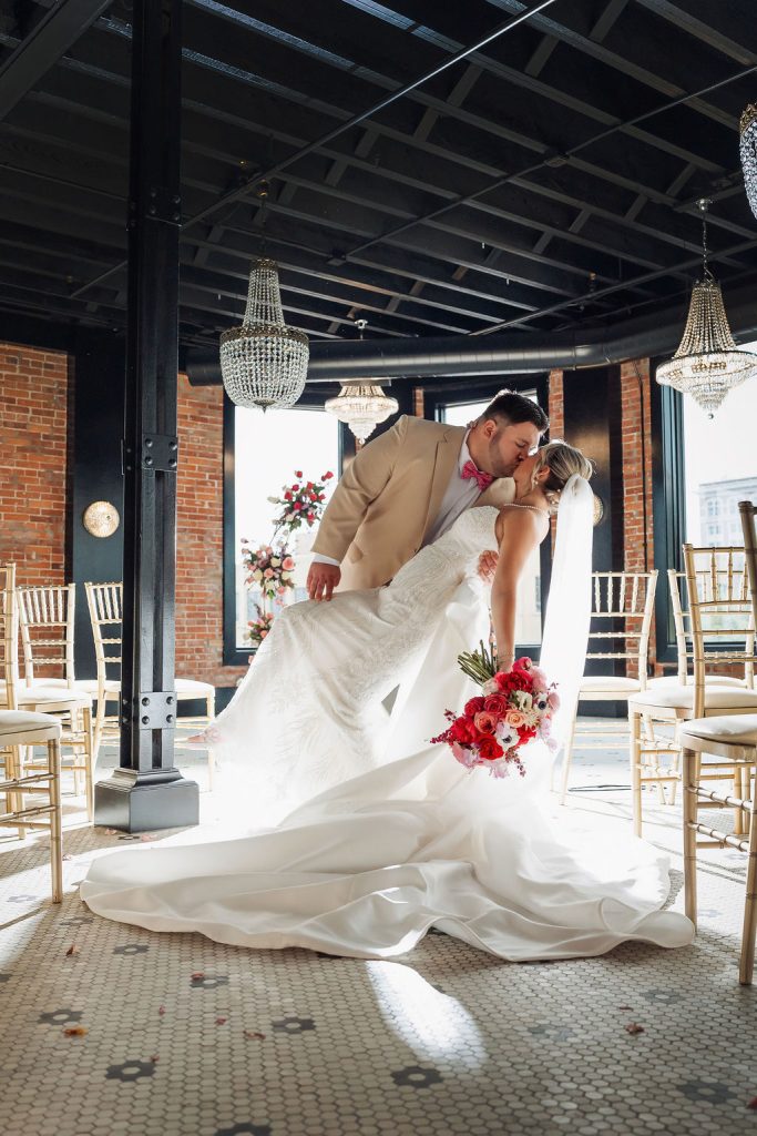 Despite the gloomy weather, Paityn & Garrett’s wedding day at The Refinery at the Johnstone-Sare Building in Bartlesville was absolutely stunning! The venue’s multi-level setup made for a seamless celebration—with the ceremony on the second floor and the reception on the third. Featuring soft pink details and sweet nods to their beloved pup Dylan, their day was as personal as it was beautiful. Scroll for a peek at the magic!