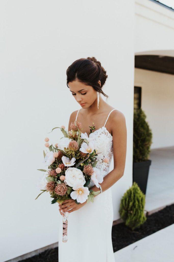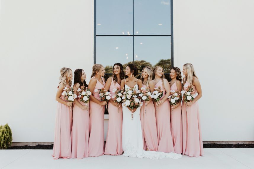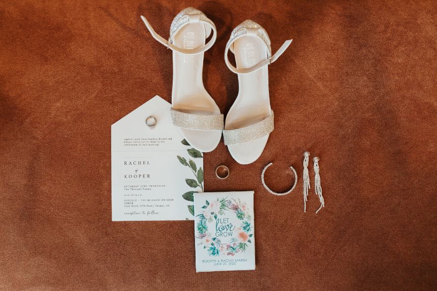 There is so much rustic romance to swoon over in this wedding around the light, airy Tuscan-inspired setting that is Sorelle – The Meadow on Deer Creek playing out in delicate blush pink and earth tones. Rachel and Kooper first met when they attended the same college and had a few mutual friends. Kooper got ahold of Rachel’s number and the rest was history! When the time was finally right, Kooper used a family affair as an opportunity to pop the question. Rachel’s family planned to head out to a special piece of land to take family photos in a clearing where they would one day break ground. While they were shooting, Rachel’s mom came up to help her fix her hair and when she turned around again, Kooper was down on one knee with a beautiful diamond ring from Kelley Jewelers that now sparkles in its place on her left hand. Rachel says she was completely shocked and overwhelmed with nothing but joy in that moment that she will never forget! Now in their summertime wedding at Sorelle, country elegance was definitely the mood and it was carried out so well through this entire affair. A rehearsal dinner at the venue started the wedding weekend out on a good note and Rachel and Kooper’s party people came back to celebrate them once more when they tied the knot! Greenery galore, wild and free-spirited florals, and rustic romance all around, this blush pink soiree was one for the books! Read on for a note from the bride about one of her favorite wedding day memories, her tear-jerking walk down the aisle and her now-husband’s adorable reaction! Cheers to Mr. and Mrs. Marsh!