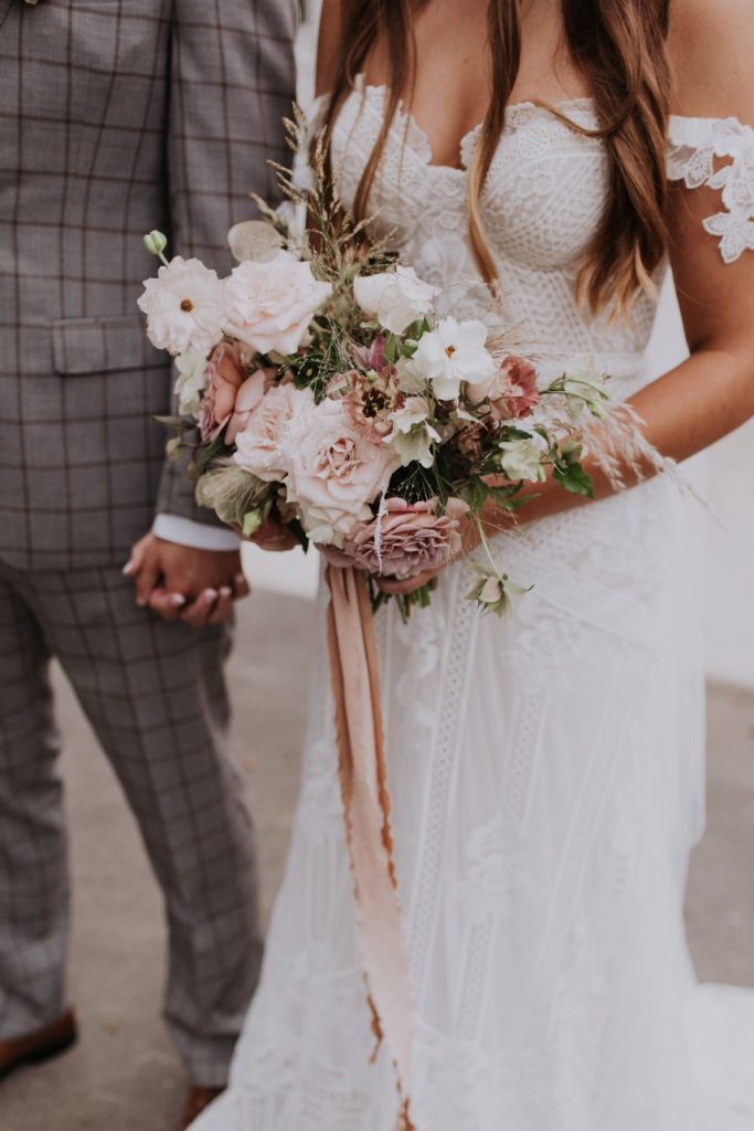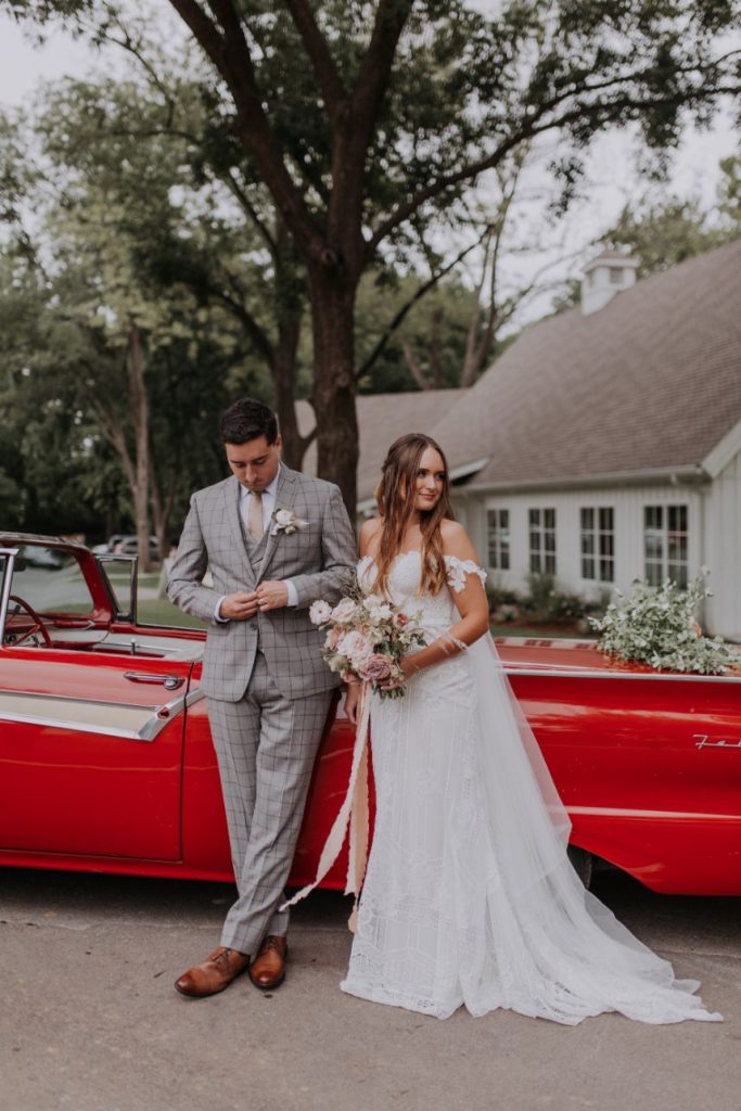 Where do we begin with Shelby and Brooks’ boho autumn wedding at Spain Ranch?! Shelby is an absolutely stunning bride, and her soft curls and glam makeup by Hannah Miller are just gorgeous. The rustic Tulsa wedding venue is beautiful with seasonal florals and plenty of pampas grass from Anthousai, and decor from Marianne’s Rentals. Take a peek!