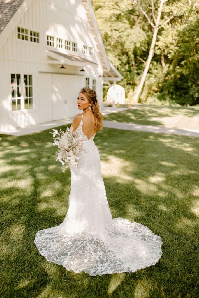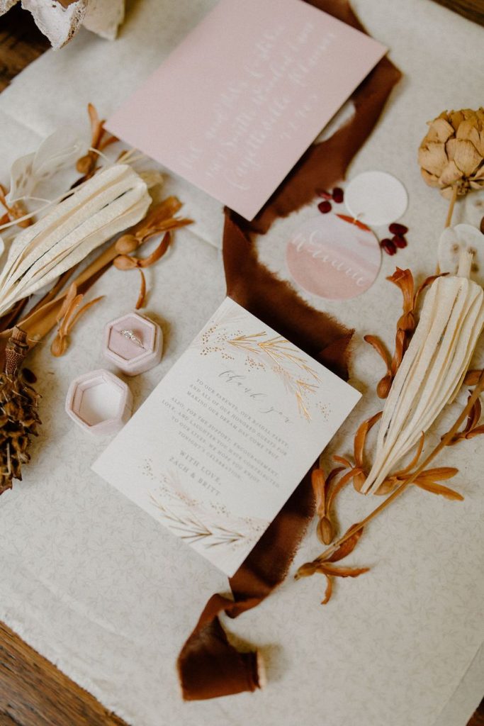 From the planner: “For those of you who have not been to the gorgeous venue, Spain Ranch, you are totally missing out on this multifaceted modern barn! In the white barn, we went full out boho focusing on dried florals with pops of pink, tan, and terra cotta. We even crafted this gorgeous backdrop by hand the day before. We thought it wasn’t going to work out, but the wedding gods have a funny way of making impossible things come to life.”