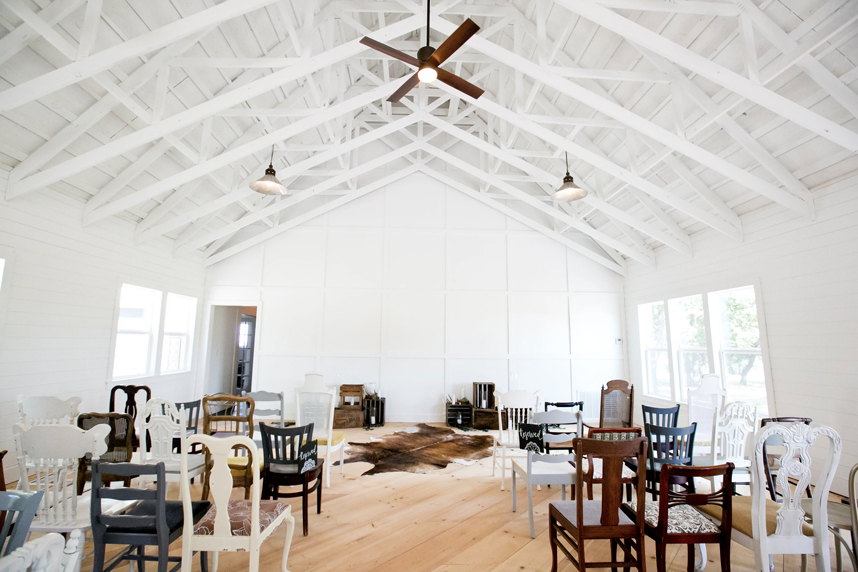 The Farmhouse at Grassroots Vintage Events – With all-white interior, cathedral ceilings, farmhouse lighting and pine wood plank flooring, The Farmhouse at Grassroots Vintage Events beams of Southern hospitality that is perfect for any bride’s vision. The Farmhouse is located on 50 acres of farmland in Pauls Valley, Oklahoma. With a vintage rental warehouse on site, Grassroots Vintage truly makes your wedding planning experience a breeze.