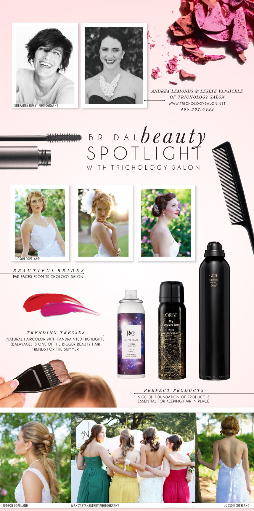 A good foundation of product is essential for keeping hair in place on a bride’s wedding day. From hairsprays to dry shampoo to styling products with hold, we have the products a bride’s hair would need. Some of our favorite products here at Trichology Salon are Soft Lacquer, Imperméable and Dry Texture by Oribe. From the R+Co line, we like Foil and Outer Space. With the right foundation, a bride’s hair will look great and withstand Oklahoma’s weather.