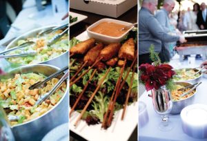 Lipstick is a must have as it will need to be reapplied throughout the event. A light pressed powder for quick touch ups is also great to have, especially with the summer heat.
