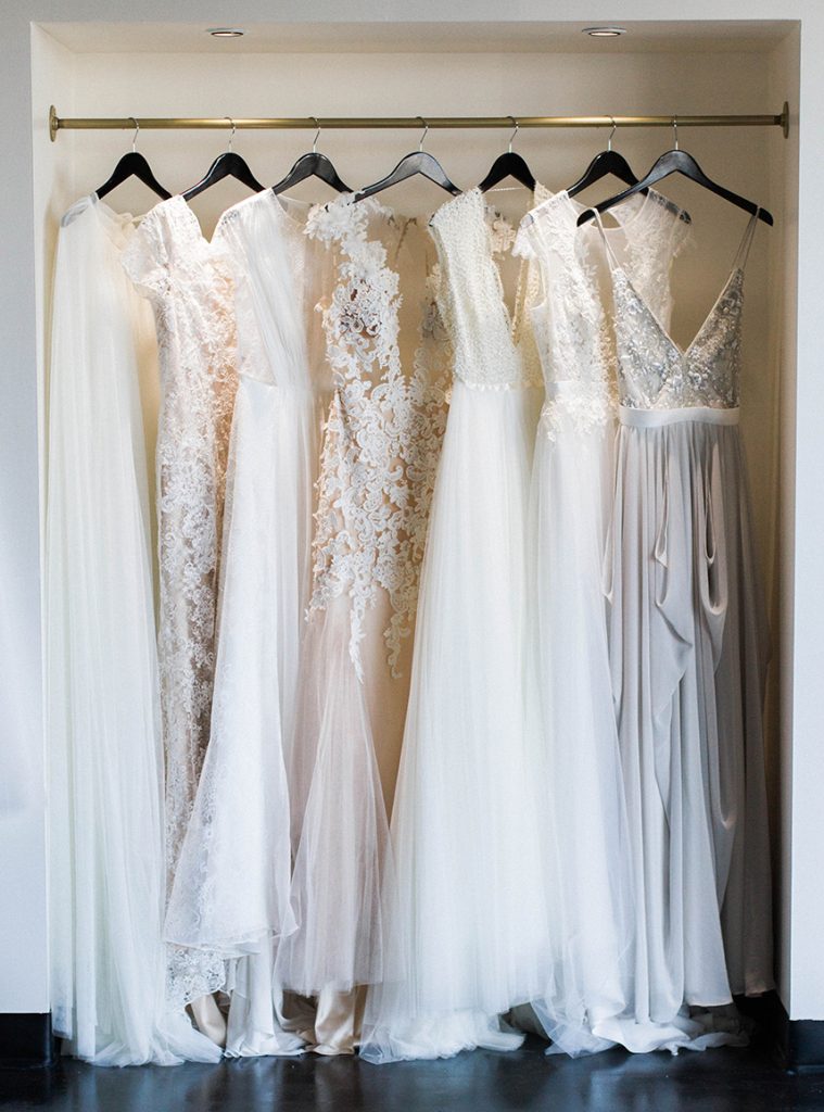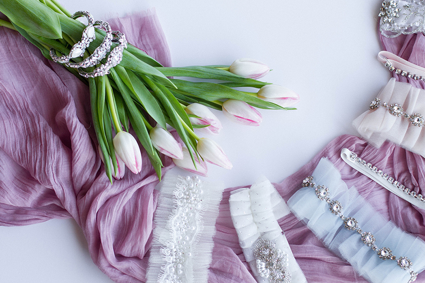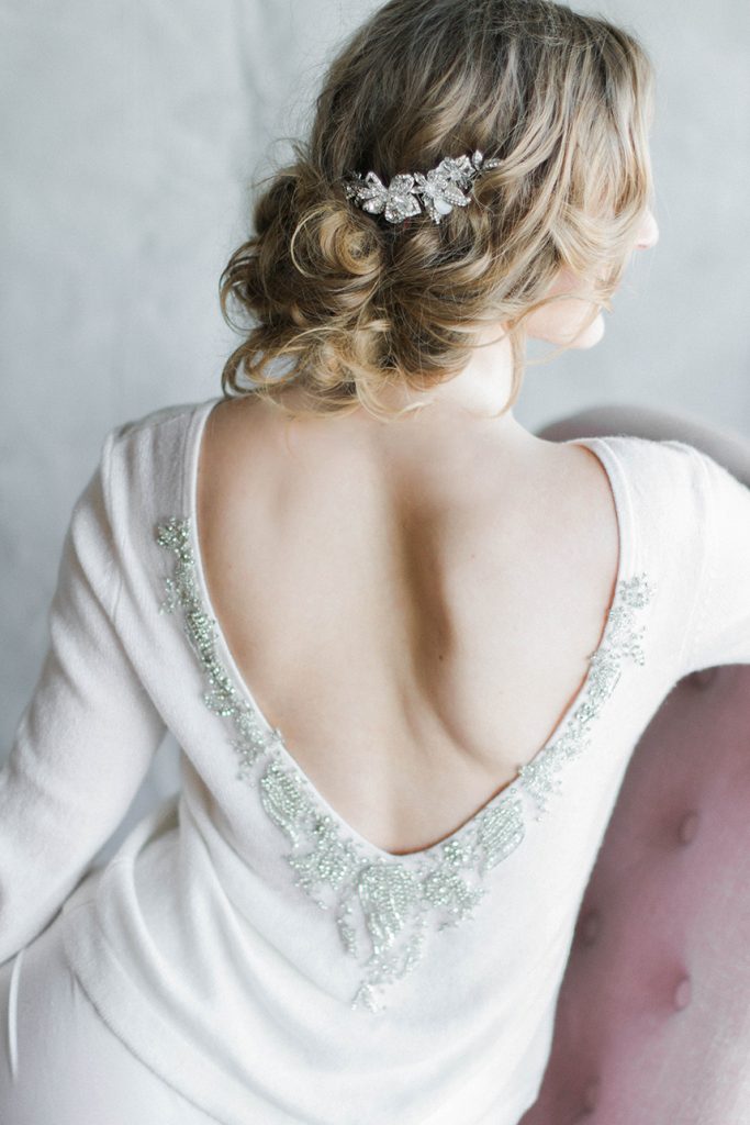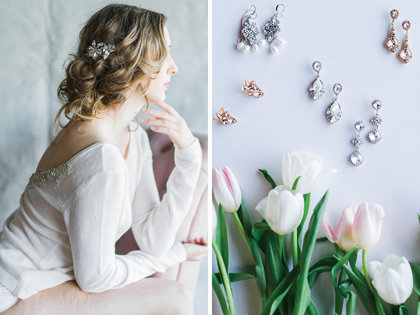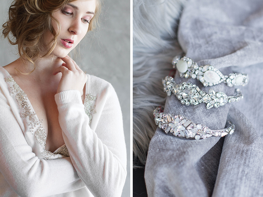 Take a peek at this lovely and intimate bridal boudoir shoot Modern Love Photography captured amongst the luxe wedding dresses at local bridal boutique Chantilly Couture. Using the sparkling jewelry, garters and hair pieces as accessories and rows of flowing bridal gowns as a backdrop, this exudes every bit of femininity that you’d expect from a boudoir shoot. We love how the model bride is fitted in bridal separates along with classic lingerie pieces for a new take on this style of shoot. Happy Friday!