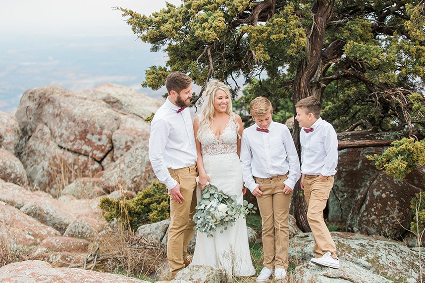 Breathtaking is truly an understatement for Lindsey and Sean’s bridal day after session by Andi Bravo Photography! The Wichita Mountains served as such an incredible back drop for the day, but even then the love between this gorgeous couple and their two boys shone brighter than anything. Keep scrolling to look through the stunning highlights from this one-of-a-kind shoot along with more details on the Mares’ big day!