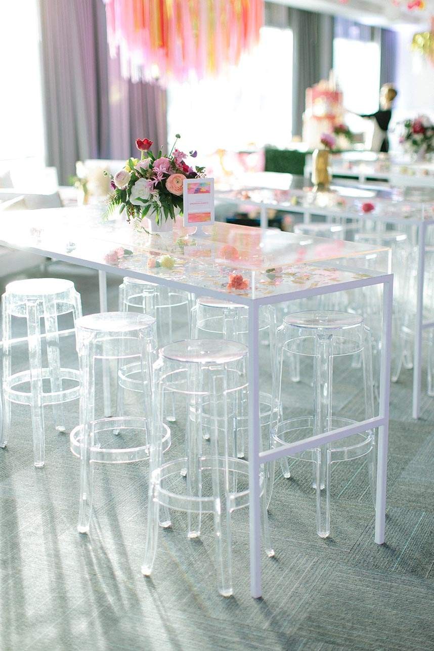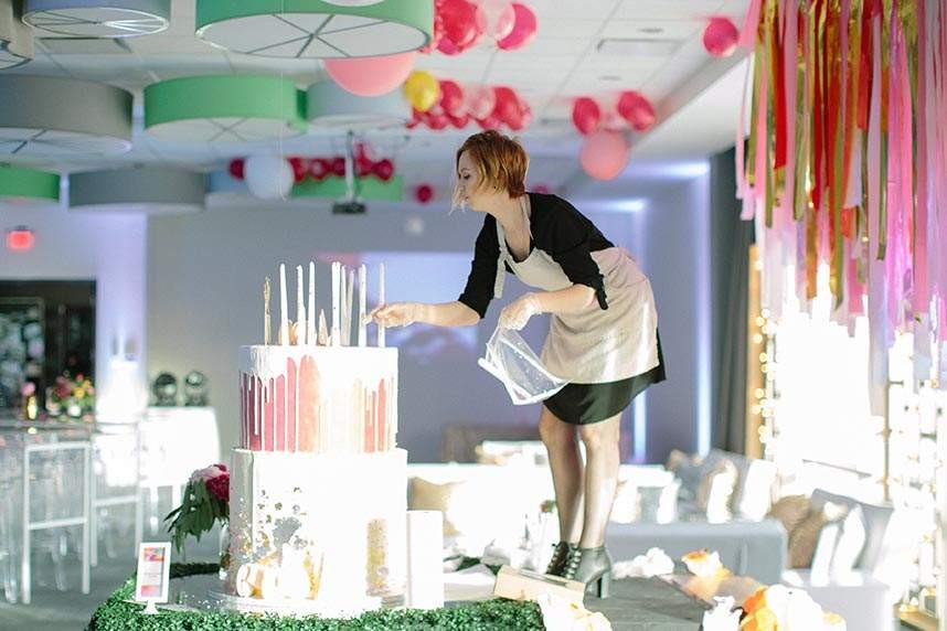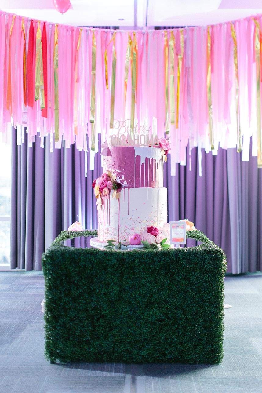 We knew we wanted a birthday cake to mark this important milestone in the magazine’s life. When The Round House Bakery proposed a larger than life, five-foot birthday cake, we knew this was going to be special! Taking 500+ eggs to make and weighing in at over 100 pounds, Kayla, amazing baker and brains behind The Round House Bakery, created a flawless vision that served up to 750 guests. Hot pink and adorned with giant macarons, floral and oversized candles, we were so proud to surprise Kami and Ashley with a “Happy Birthday” serenade mid party!
