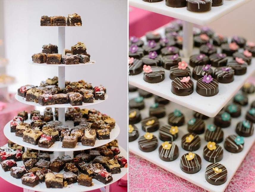 This room also housed our mini dessert display from six of our amazing bakery partners across the state. Guests were able to sample the desserts as they lounged and watched scenes and images from the making of Brides of OK since 2007 or they were able to box them up to take home as favors. Big, big thanks to Amy Cakes, Andrea Howard Cakes, Apple Tree Chocolate, Mishelle Handy Cakes, Ms. Laura’s Cakes and You Need A Cake for providing the yummy treats!