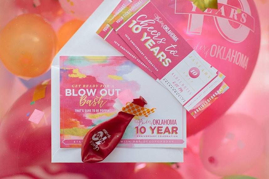 The past month has been an absolute whirlwind since the release of the 10th Anniversary issue of Brides of Oklahoma. We still cannot believe we get the opportunity to work with such talented creatives across the state every single day! Ten years ago, publishers Kami Huddleston and Ashley Murphy started this mission at their dining room table; today the magazine is the most coveted local wedding resource for Oklahoma brides. We thought that the 10th Anniversary issue release should be a celebration of the past decade, every wedding we’ve seen and the amazing wedding professionals behind them. When we set out to throw a birthday bash unlike any other, we knew we couldn’t do it alone! We enlisted the help of a few of Oklahoma’s finest and they certainly did not disappoint!