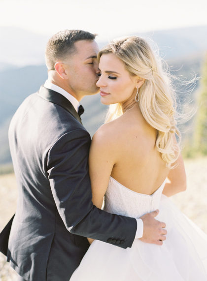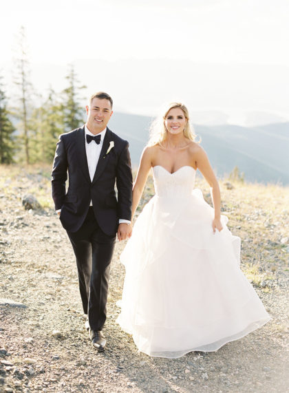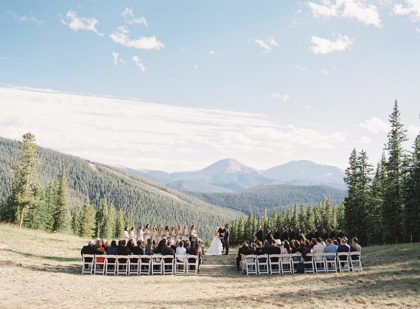 Brittan chose a theme of mountain chic and modern romance. Pink Monkey Rentals and Ali Fortunato Botanicals put their vision together by including simple and clean color tones of white, gold and green to complement the atmosphere of the venue. This worked especially well when the bride and groom had their first look atop a mountain Brett Heidebrecht captured perfectly. Guests also basked in the beauty of the mountains as they arrived to the ceremony via gondola. Gibson Events orchestrated everything perfectly and went above and beyond their expectations to execute their dream wedding!