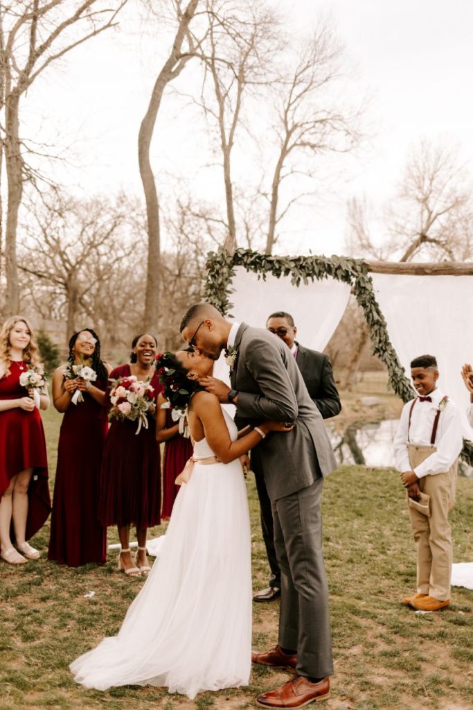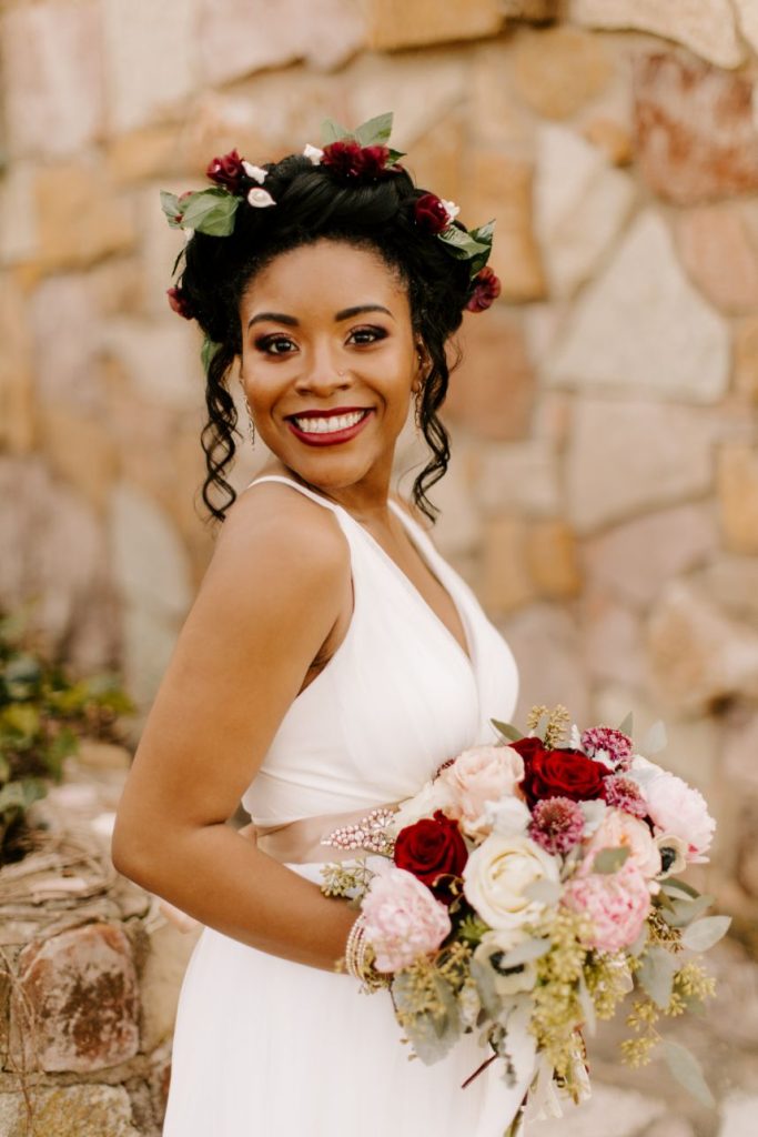 Tierra and Matthew’s casual boho wedding was the perfect blend to honor their Ghanaian roots. The combination of crimson and pops of rose gold blooms looked incredible with the subtle details of greenery throughout the ceremony and the reception. Also, the pops of metallic gold gave the ceremony a romantic and glam feel. Playing tribute to the culture they grew up with, the couple ensure their African American traditions were apparent in every detail: to the food to the post ceremony games, to the dancing…there was lots and lots of dancing. During the reception, the couple did a traditional Ghanaian money spray with friends and family to celebrate Tierra and Matthew and help them get their new life started. Forever Borrowed did a spectacular job organizing every last detail and helping the newlyweds’ vision come to life. Following the wedding, the couple planned a honeymoon escape with Michelle’s Destinations to spend a week in the sun in Cancun, Mexico. They felt so at ease knowing all their travel accommodations were perfectly planned and no stress would get in the way of relaxation. Read on to hear from the bride about her favorite wedding moment and why. Cheers to the Takyi-Michas!