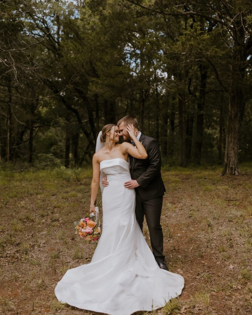 Newlyweds Kenzie and Conner, who met in college, celebrated their spring wedding at Redbud Ranch, adorned with beautiful blue and gold details. Kenzie stunned in a chic strapless gown from House of Bridal, adding an extra touch of elegance to their special day. Scroll for moments we love captured by Seven Streets Photography!