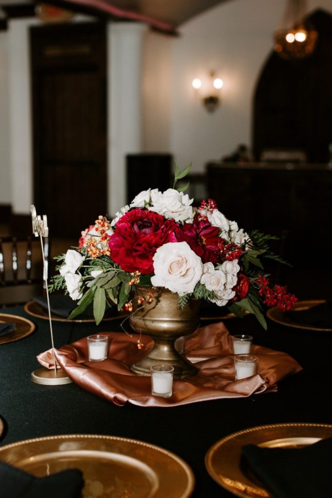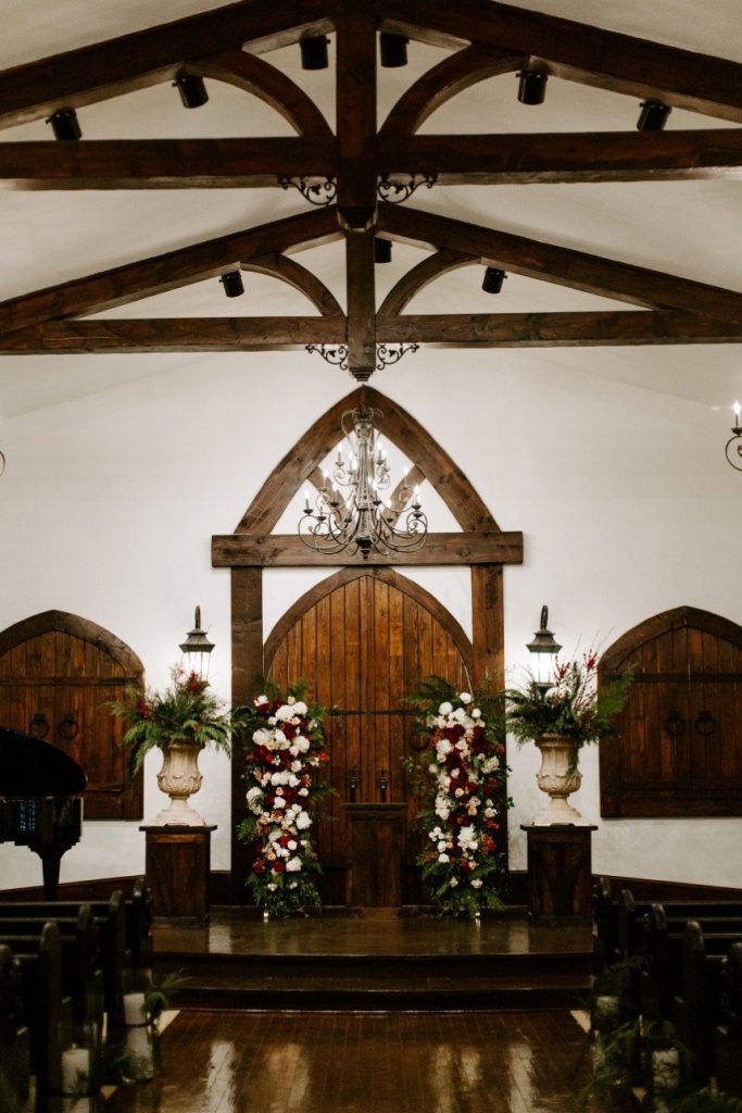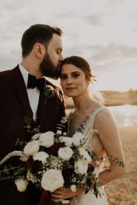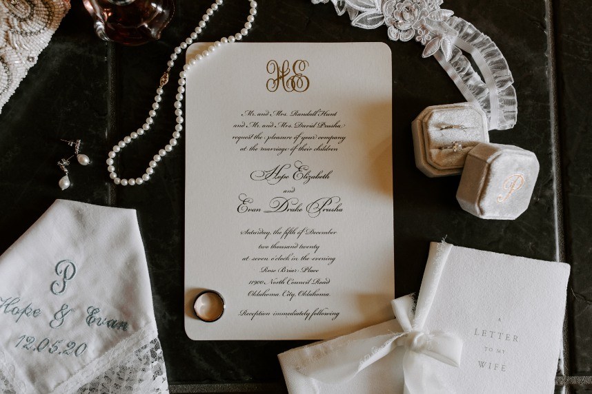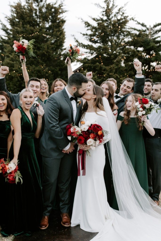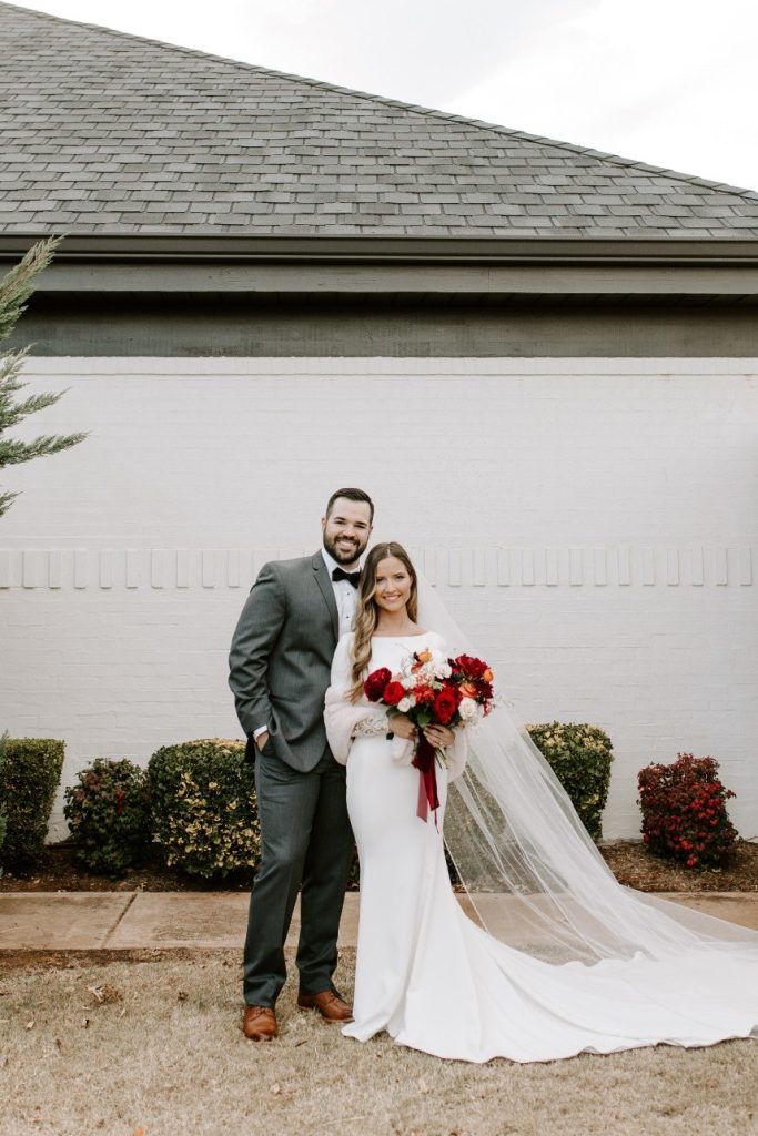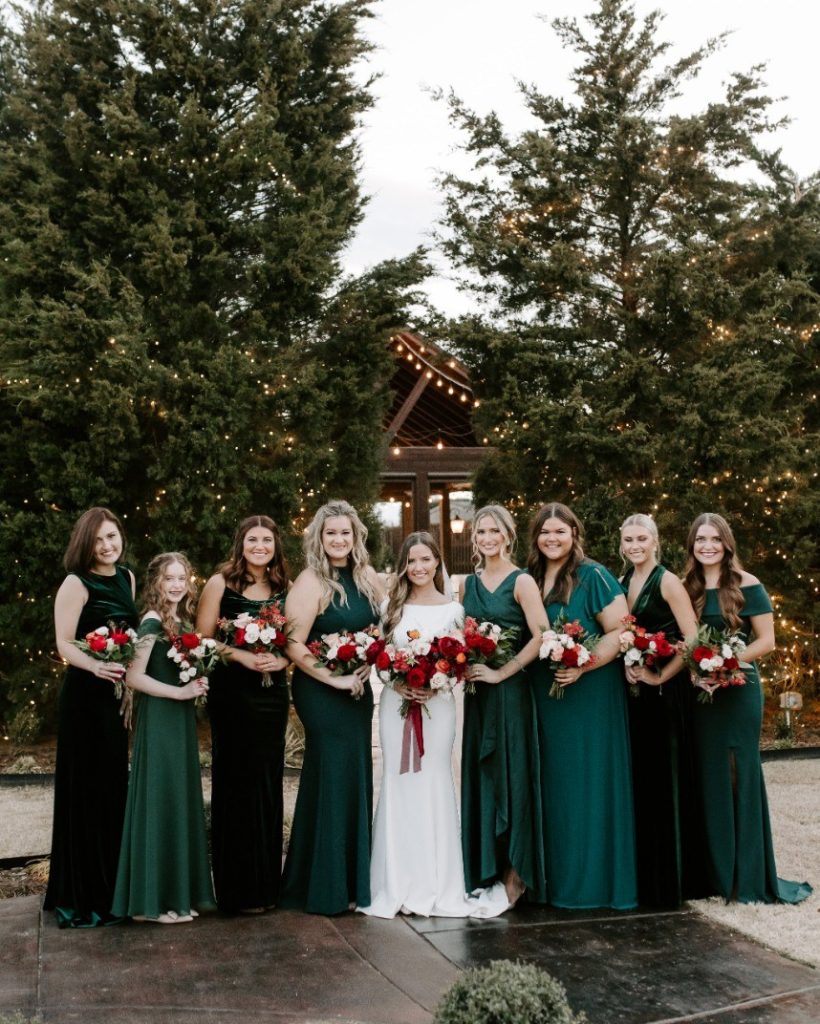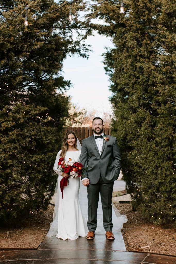Our winter wonderland wedding dreams came true for Hope and Evan’s stunning Christmas wedding in Oklahoma City. After meeting in college, Hope and Evan always loved the holiday season and looking at Christmas lights. This was one of their favorite traditions. Evan nailed this winter proposal by popping the question in a light-wrapped gazebo with a surprise engagement party after. The newly-engaged couple shared the exciting news with classic invitations from Occasions in preparation for the big day. Their wedding day was nothing short of magical with classic and romantic Christmas elements. Hope spent the morning getting ready, filled with excitement and pre-wedding jitters. After getting ready, Hope dressed in a chic bateau-neck minimalist gown and a gorgeous cathedral-length veil from Bella Rose Edmond. The groom was dressed in a grey suit from Bella Rose Edmond, as well. Their day was filled with memorable moments like using toasting glasses that Hope’s parents used at their wedding to drink champagne from the night’s bartender, Blue Label Bartending. Their burgundy, emerald green, blush and gold Christmas wedding aesthetic made for such a romantic day. Dreamy Christmas-inspired florals from Poppy Lane Design in the bride’s bouquet, altar and centerpieces tied the day today in the most romantic way. At the end of the evening, the couple got to share a special moment embracing each other and doing their last dance to start their new lives together. After such a memorable day, the couple will have photos from Kayley Haulmark Photography for years to come. Cheers, Hope and Evan!