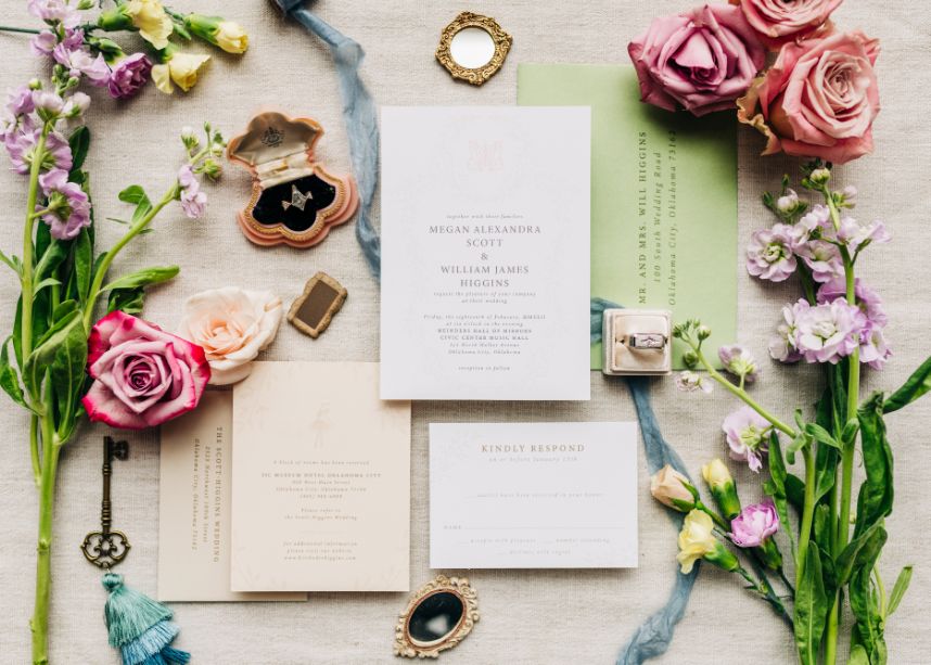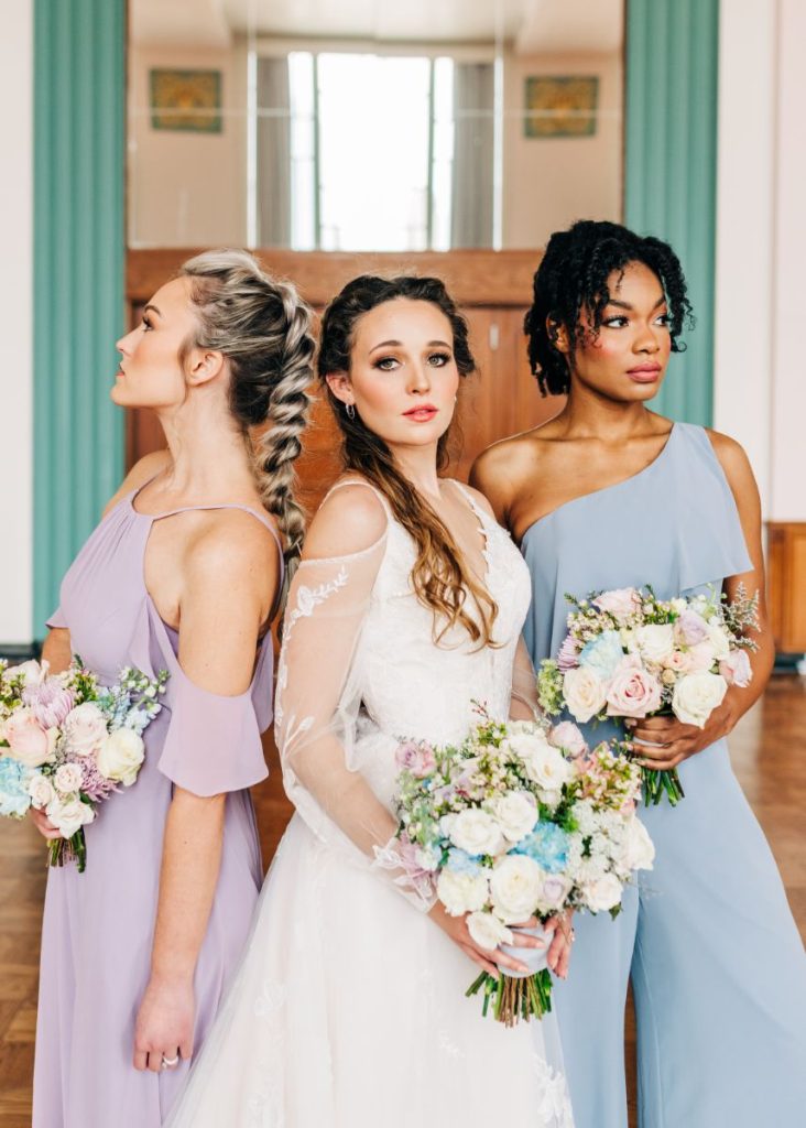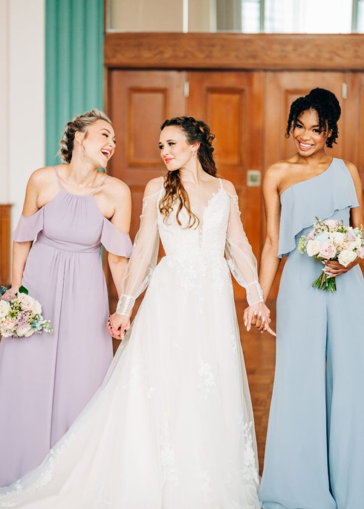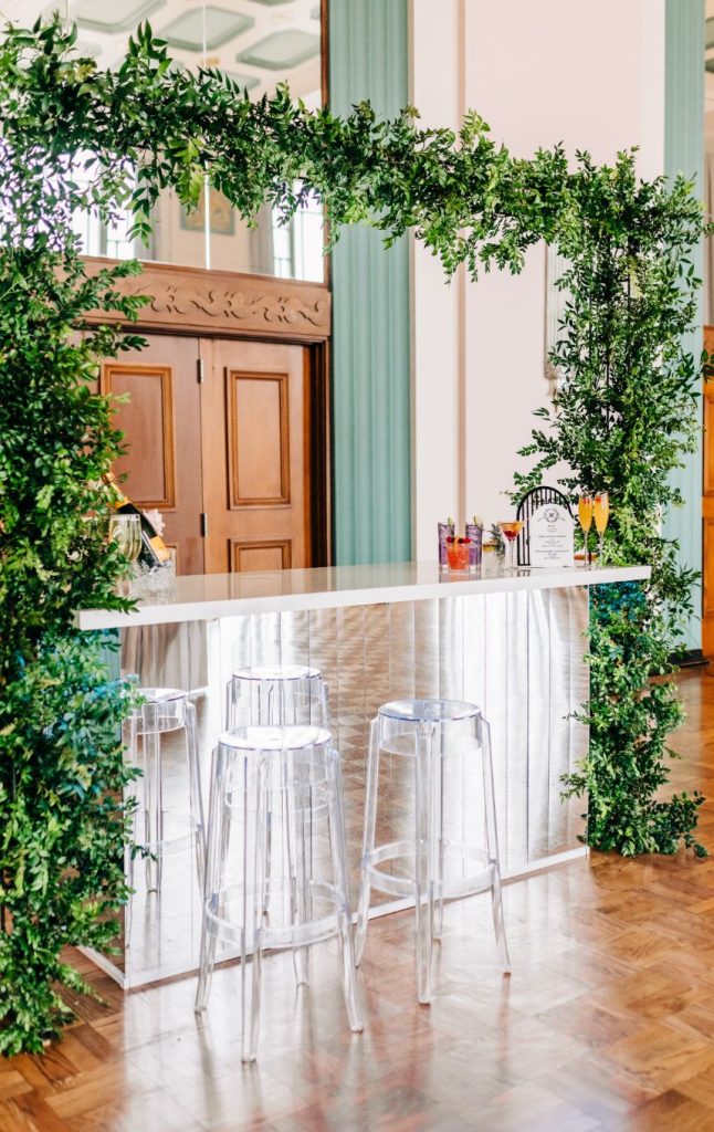 We can hardly believe our eyes at this Civic Center Music Hall wedding inspired by indoor garden party scenes with beautifully elegant ballet influences all around the Oklahoma City venue where dance form played a large part in this nuptial design featuring a bride and groom whose dance is the perfect blend of intimacy, grace and movement. Grand floral installations by Allyson Whitney Designs created a secret garden vibe that RachelleLynn.co captured so effortlessly and acrylic details like the custom seating chart and cocktail menu by Wooden Hearts Boutique as well as an eye-catching mirrored bar where your guests can order up endless scrumptious sips mixed up by Blue Label Bartending! Reception dining that twists and turns in whimsical ways from Marianne’s Rentals helped to set the tone for a fun spring evening, and set with paper details by Eros Studios, everyone knows they’re in for a luxurious experience. Delicate pastels were at play in bridesmaid dresses from Bella Rose Bridal as well as a breathtaking bridal gown this model wore so well along with stunning hair and makeup looks created by the artists at Brushed Salon and Makeup Studio. Add some opulent accessories from Kelley Jewelers to the mix and you have a perfectly planned day. Read on from a note from the venue manager who coordinated this Civic Center Music Hall wedding inspiration down below. Cheers!