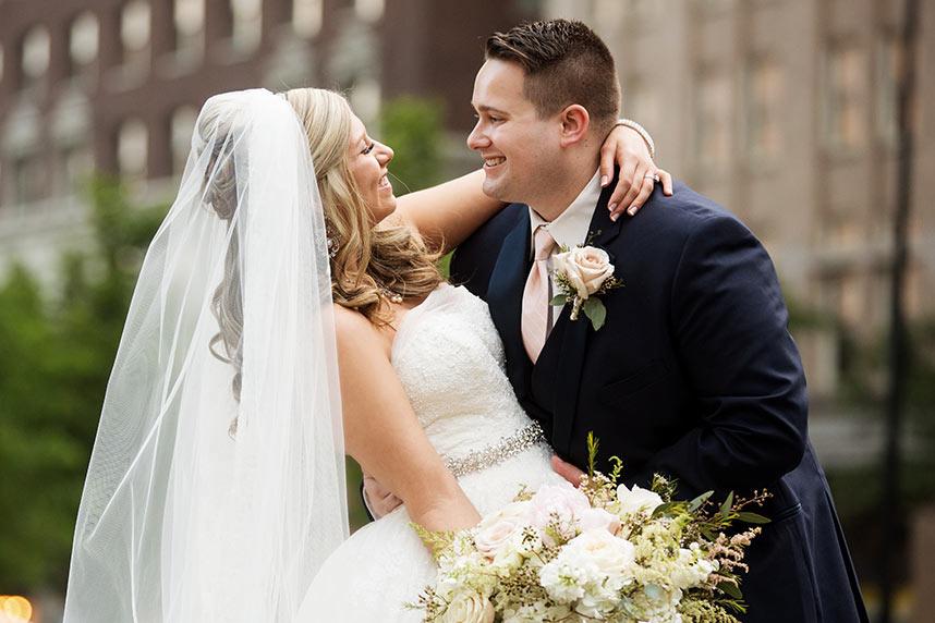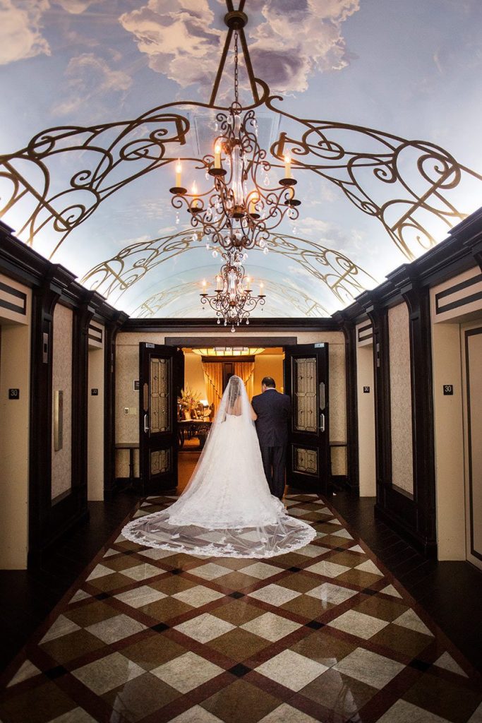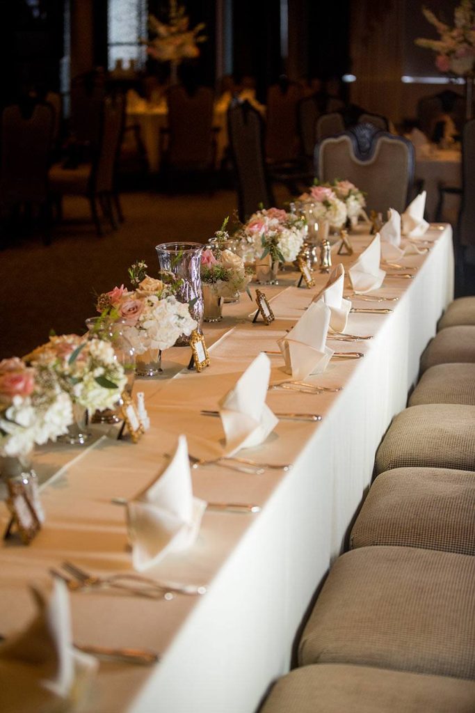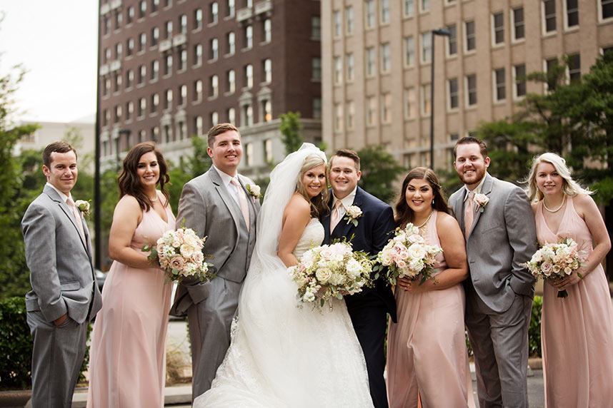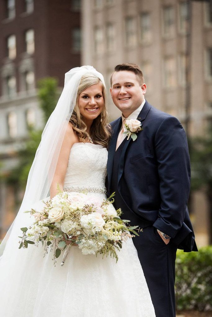 Originally, the couple planned on getting married in December, but they soon realized they couldn’t wait that long and opted to get married on June 3, 2017. After many weeks of hard decisions, the couple finally chose The Summit Club for their venue, which provided the perfect view of the downtown Tulsa. Their wedding consisted of a blush and navy theme with accents of gold. Vena walked down the aisle in an ivory lace Vera Wang ball gown with a sweetheart neckline. She finished the look with a cathedral-length veil.