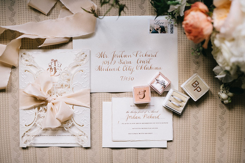 The couple worked with Robyn Martin from The Wedding Belle to bring their day to life. Although rain plagued the days prior to the wedding, the vendors worked around the clock to ensure the ceremony could proceed outside. Their wedding day was bursting with love as they were surrounded by nearly 300 guests, most of whom Sam or Jordan had known since childhood. Following the nuptials, guests were able to indulge in the signature drink, a house- made strawberry margarita, coined The Piper after the couple’s beloved dog. Sam surprised Jordan with a groom’s cake by Mishelle Handy Cakes that commemorated his favorite Chinese restaurant. The chilly evening made it a perfect night for those who wanted to relax and smoke cigars around the fire pit. Following the last dance, the couple surprised guests with mini pizzas. The couple was then whisked away in a vintage Rolls-Royce to The Colcord Hotel and then off to Hawaii for a two-week honeymoon!